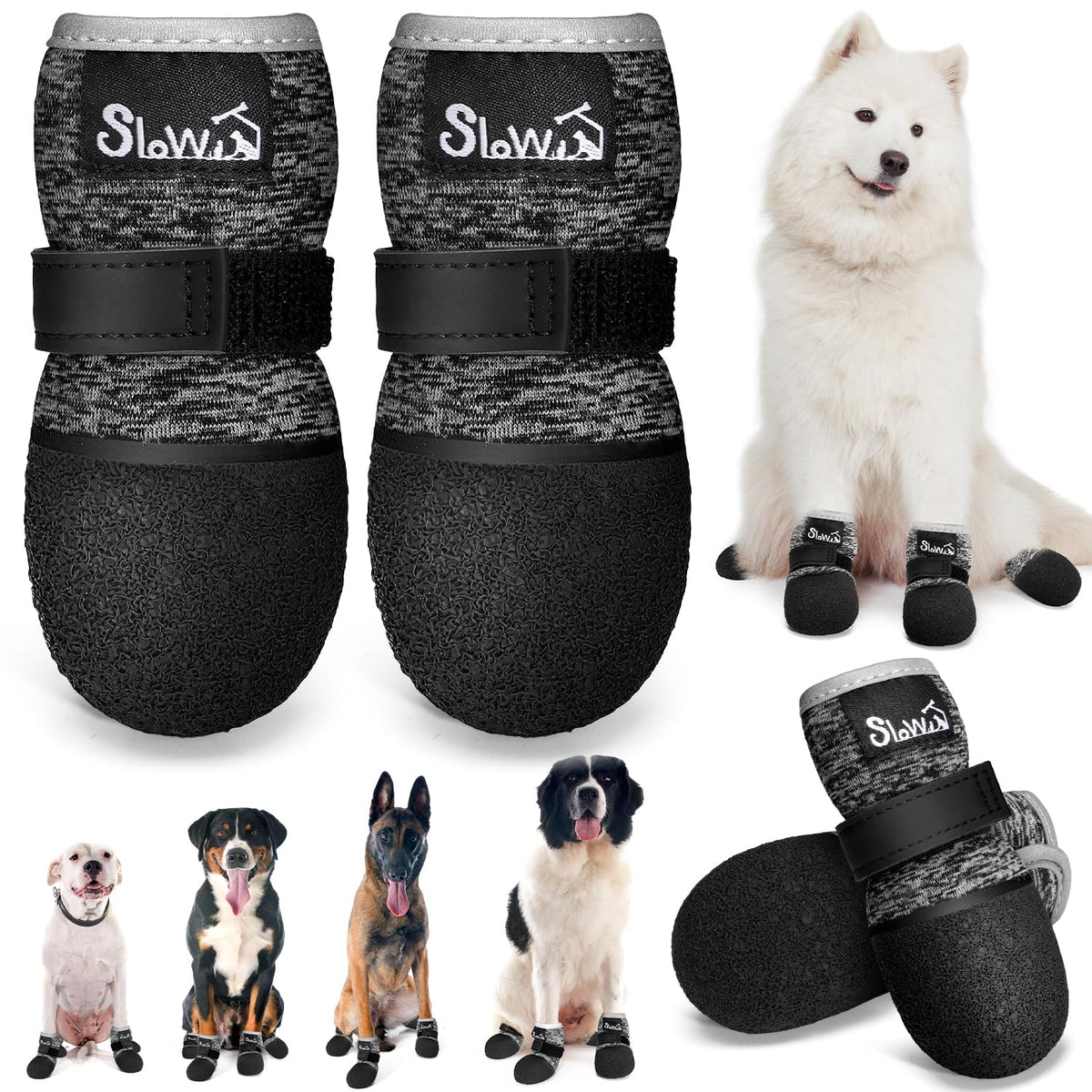 Lukovee Dog Shoes - Breathable Dog Sock Shoes For Hardwood Floor Snow Hot Pavement, Waterproof Non-Slip Soles Booties With Refle