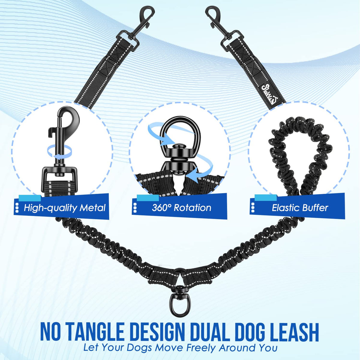 Lukovee Dual Dog Leash Is A Multi-Functional Leash Designed For Two Dog Owners. Its Adjustable And Tangle-Free Design Ensures That Dogs Feel Comfortable And Unrestricted. Moreover, It Comes With Extra Handles On The Bungee Leashes, Which Provides More Control And Stability When Needed. The Reflective Strip Makes It Easy To Identify Your Dogs In Low-Light Conditions, Making Walking With Two Dogs More Convenient Than Ever Before. Outstanding Features Of The Lukovee Double Dog Leash Splitter With Extra Handles: 1. As A Dog Leash, It Can Help You Perfectly Control The Actions Of Two Dogs, But It Makes Them Feel Comfortable And Move Freely. 2. The Extra Handles On The Bungee Leashes Provide Additional Control And Stability. 3. The Shock-Absorbing Bungee Avoids Dogs From Choking Due To Strong Pulling, And The 360 Swivel Clasp Prevents The Leash From Tangling. 4. Reflective Stitches In The Leash Are Light-Reflecting Sensitive, And The Leash Can Be Extended To The Most Comfortable Length For Your Dogs. Why Choose The Lukovee Double Dog Lead: Choose Lukovee Double Dog Lead For Its Focus On The Development And Optimization Of Pet Products, Innovative Design, And Commitment To Providing Customers With The Safest And Most Comfortable Quality Products. This Ensures That You Get The Best Quality Shopping Experience While Also Providing Comprehensive Protection For Your Pets. Lukovee Has Long Been Dedicated To Creating Pet Products That Are Safe, Comfortable, And Of The Highest Quality. Specifications: Bungee Leash Stretching Range: 50-90Cm/20-35Inch Material: Nylon Strap, Abs Plastic + Metal Buckle Medium Size: Suitable For Dogs: 8-35 Lbs Large Size: Suitable For Dogs: 25-150 Lbs Package Include: 1*Double Dog Leash 1* Free Poop Bag