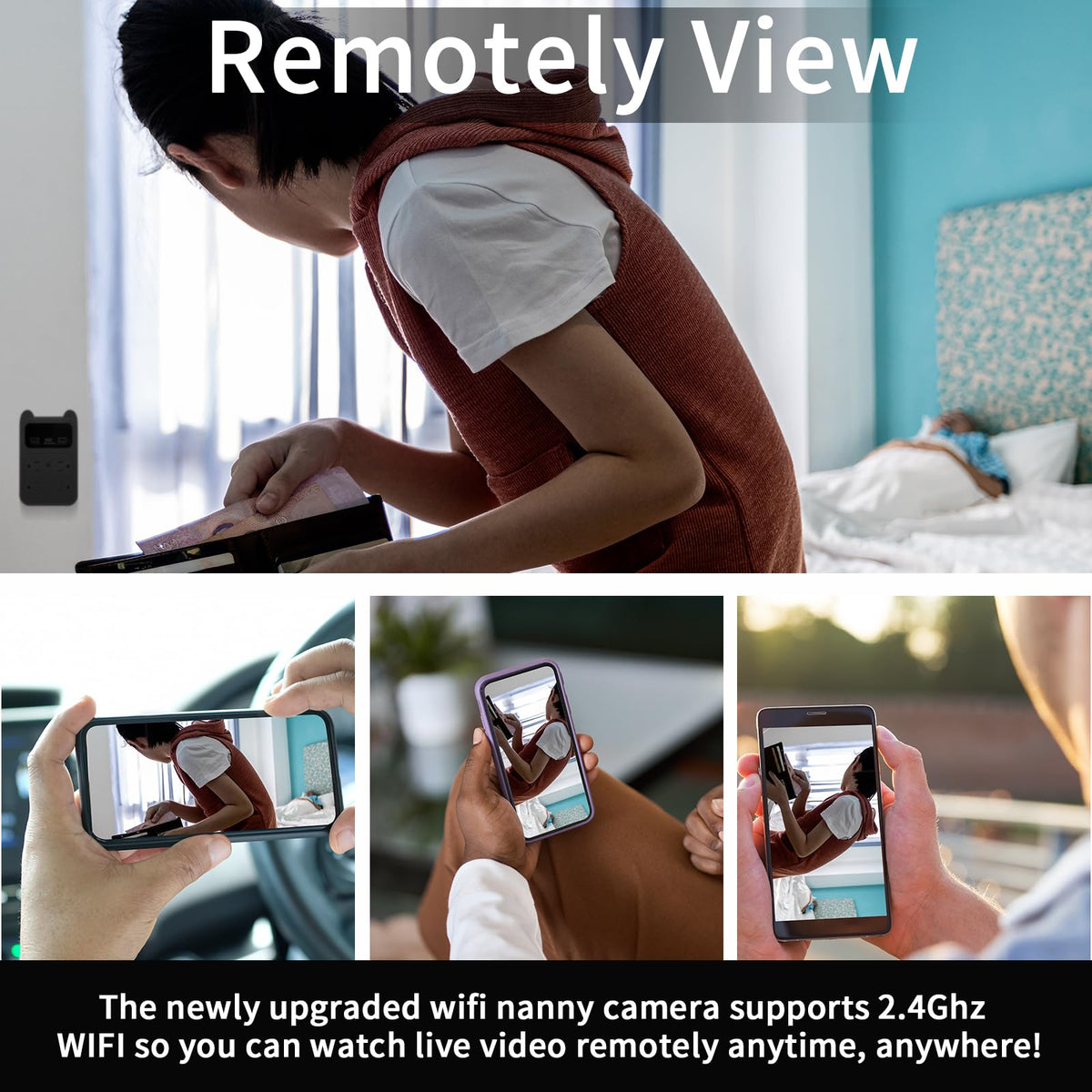 Safe nanny lens with indicators when recording. LUOHE signal will auto disappear and not be searched once connect camera to wifi. It is a: (1) Real phone charger adapter. (2) 4MP HD Wireless Camera with Remote Viewing. Main Features: ?? 4MP HD Nanny Camera?? ?? Compatible with 2.4Ghz WIFI Nanny Camera ?? ?? 120 Wide Angle ?? ?? H.264 Format - Save More Videos (Max 256GB SD card - store 30 days video)?? ?? Motion Detection &Loop Recording Model ?? NO NIGHT VISION, Can Work in Low Light. ?? ?? One cell phone can control 8 cameras at the same time. ?? ?? Support cell phone IOS system and Android system. ?? Easy to Use: ?? Search LUOHE or CAMDUCK on Youtube to view tutorial video for setup step-by-step. ?? Any questions for CONNECTING, follow below path to contact us for solving: 1). View your order. 2). Click ''Contact Seller '' to send messages. Any questions for CONNECTING, follow below path to contact us for solving: 1). View your order. 2). Click ''Contact Seller. '' to send messages. WHAT YOU GET: ?? 1 x Wifi Nanny Camera Charger ?? 1 x Micro SD Card Reader ?? 1 x User Manual ?? 1 x Triangle Teardown Tool ?? Warm Tips: Nanny camera request to Insert a high-speed Micro-SD card(NOT INCLUDED) before saving the video. Video can 't be saved auto without SD card. NO NIGHT VISION, can work on low light. Easier to configure the network when the distance between phone, camera and router within 2m. Only compatibly with 2.4GHz wireless WiFi routers, not support 5GHz. LUOHE app only work on mobile phone, Not available on iPad and computer