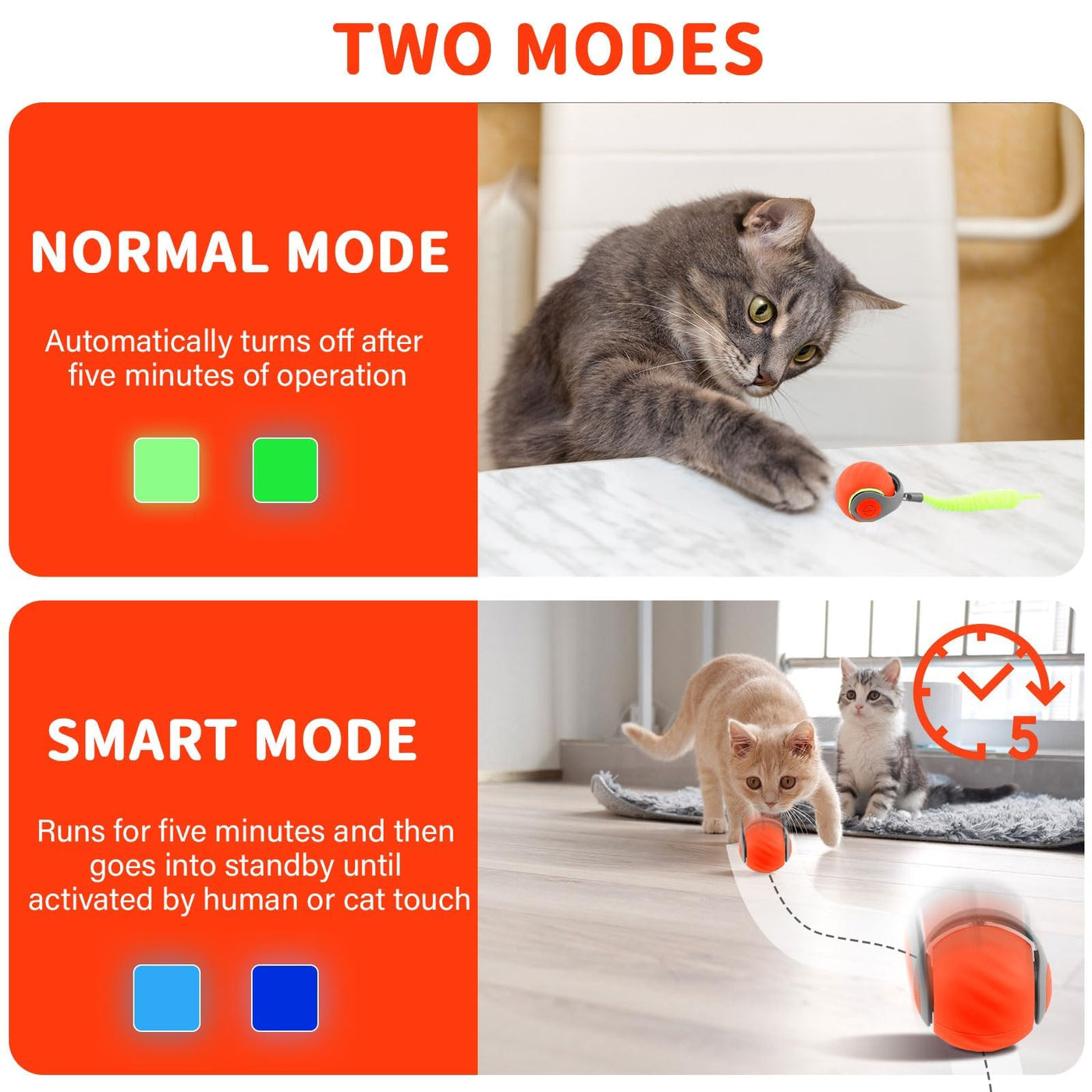 Lupapa Interactive Cat Ball Toy With Feather, Smart Ball For Indoor Cats, Motion Activated Automatic Cat Toys, Usb Rechargeable