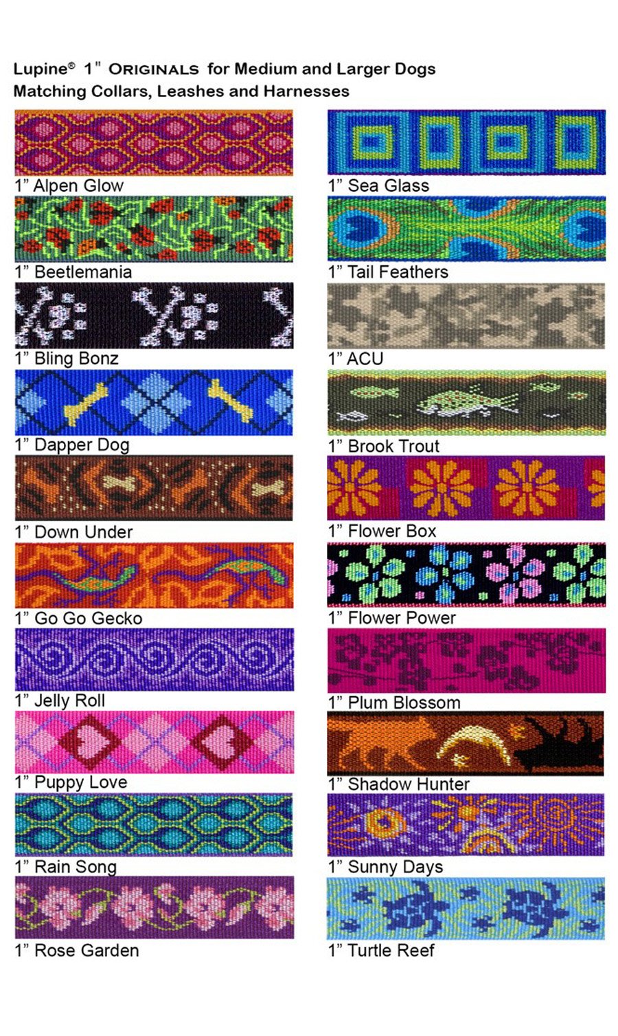All Lupine products are proudly built in Conway, New Hampshire and Guaranteed (Even if Chewed). 1'' harnesses are suitable for medium and larger dogs. Made from jacquard woven nylon, with the pattern woven into the webbing (never printed or sewn on!) Features strong bar-tack stitching, welded D-ring and a custom designed side-release buckle. In a range of fashion-inspired patterns with matching leads available. In two girth size ranges. To determine size, measure snugly around the dog, just behind the front legs, then add an extra 5-percent for a comfortable fit. Machine wash, warm water, mild soap (no bleach or bleach alternative). Air dry. Lupine products are not recommended for tie-out.