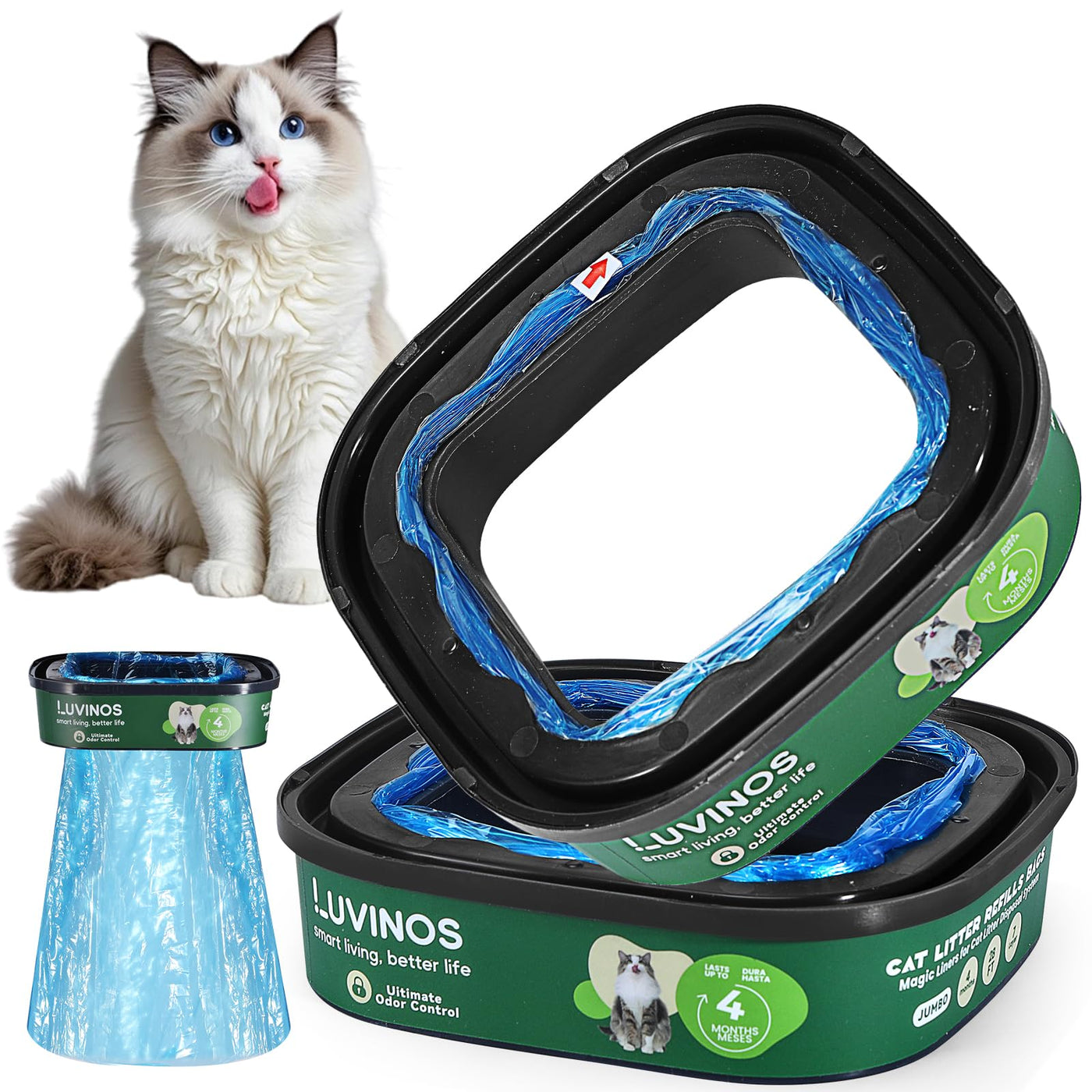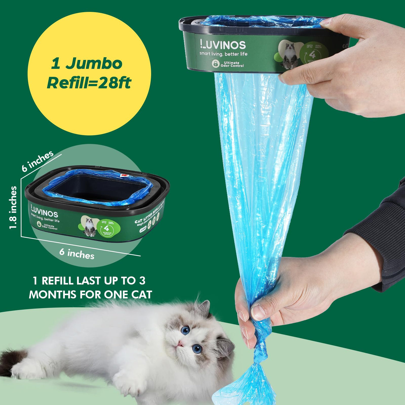 Luvinos Jumbo Cat Litter Refill Bags 28Ft - 2 Pack With 7-Layer Odor Guard - Maximum Odor Control For Litter Genie Standard, Plu