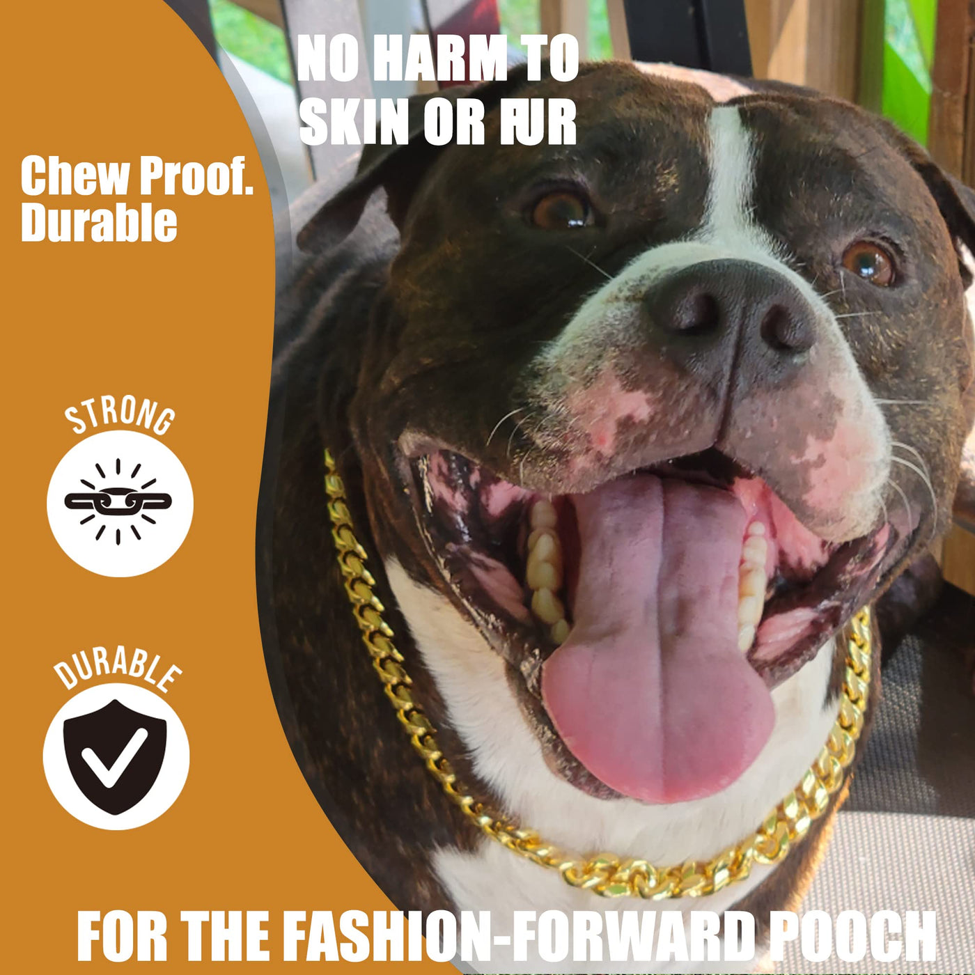 Luxlife Gold Cuban Link Dog Collar, 10Mm Stainless Steel, 5 Layer 18K Gold Plated, 'O' Lock, Bell & Bone Tag, Small To Large Dog
