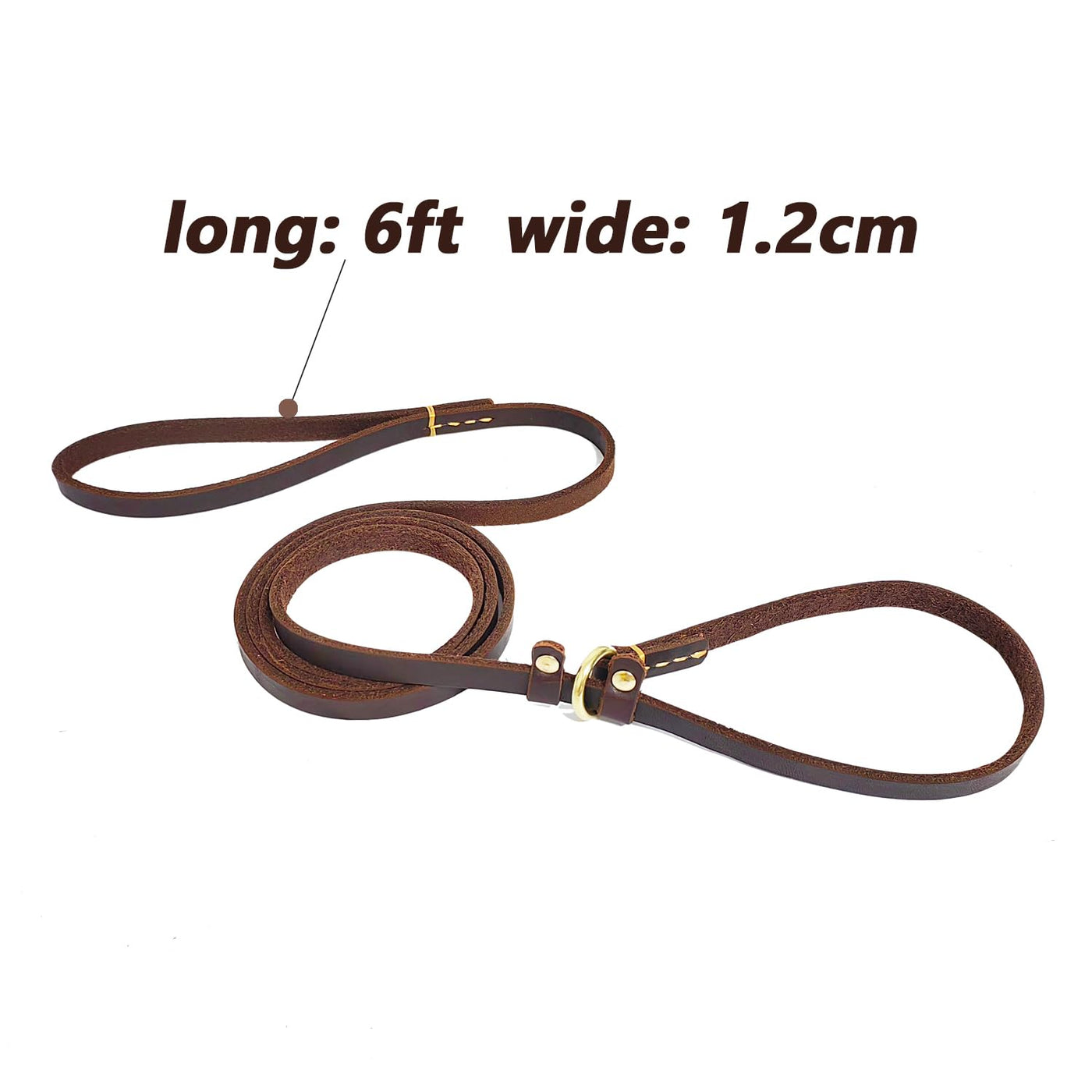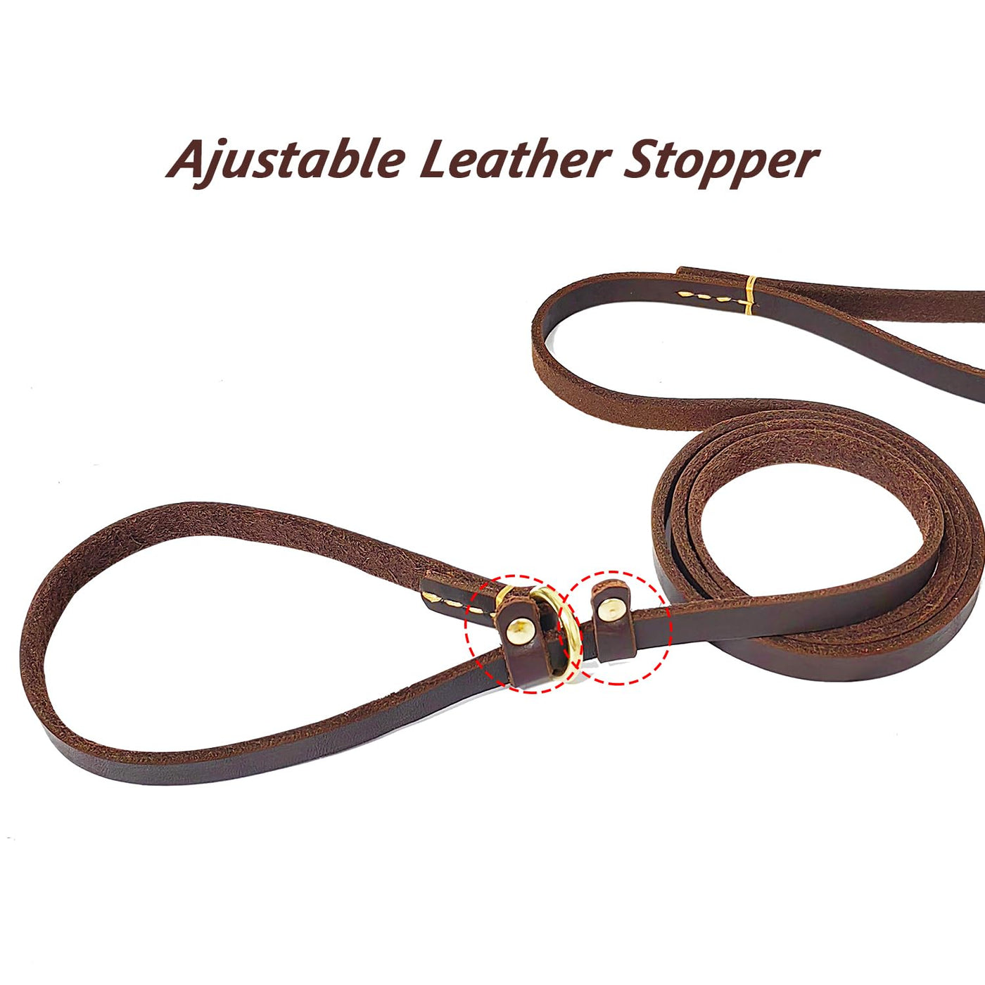Lwbmg 5.6Ft Leather Dog Leash, Real Leather Slip Lead For Medium Large Dogs, Adjustable Heavy Duty Pet Training Leash Brown