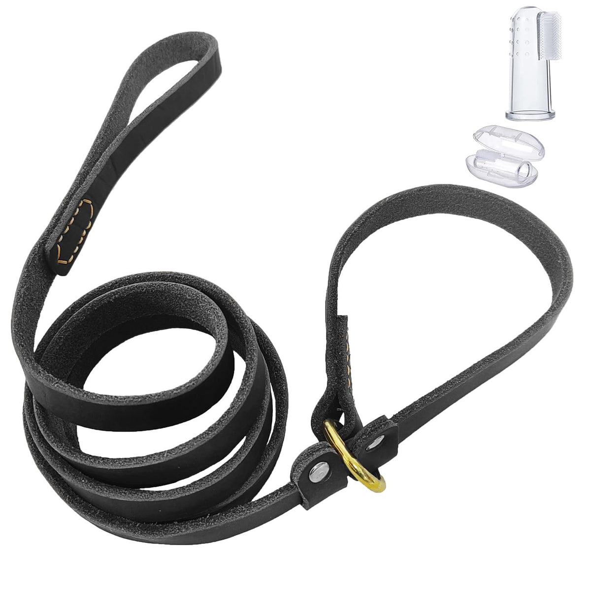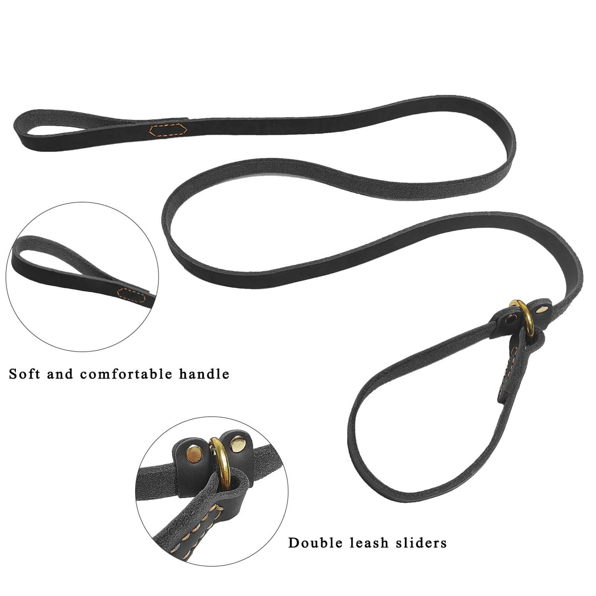 Lwbmg 5.6Ft Leather Dog Leash, Real Leather Slip Lead, Soft Adjustable Dog Training Leash For Small To Large Dogs - Black