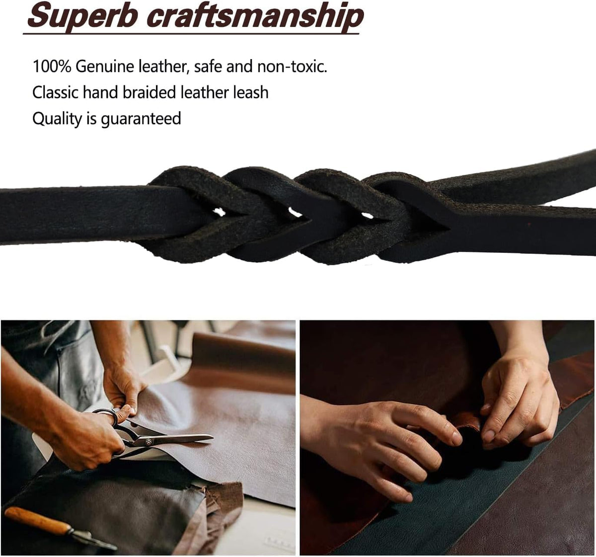 Lwbmg Insists On Using Imported Cowhide As The Raw Material For Each Handmade Leash. Because We Are Very Picky About The Thickness And Durability Of The Leather, We Can Ensure That Every Customer Can Use Our Product With Confidence. This Black Leather Dog Leash With A Copper Ring On The Handle Can Hang Dog Poop Bag Holder During Outside Training And Walking .