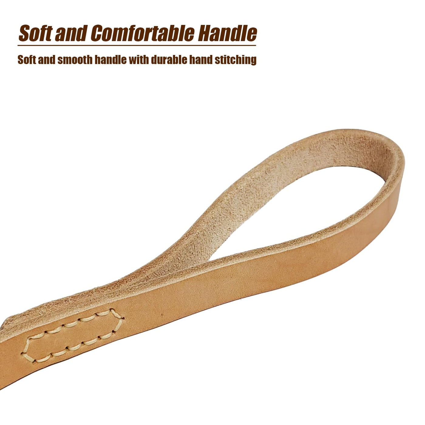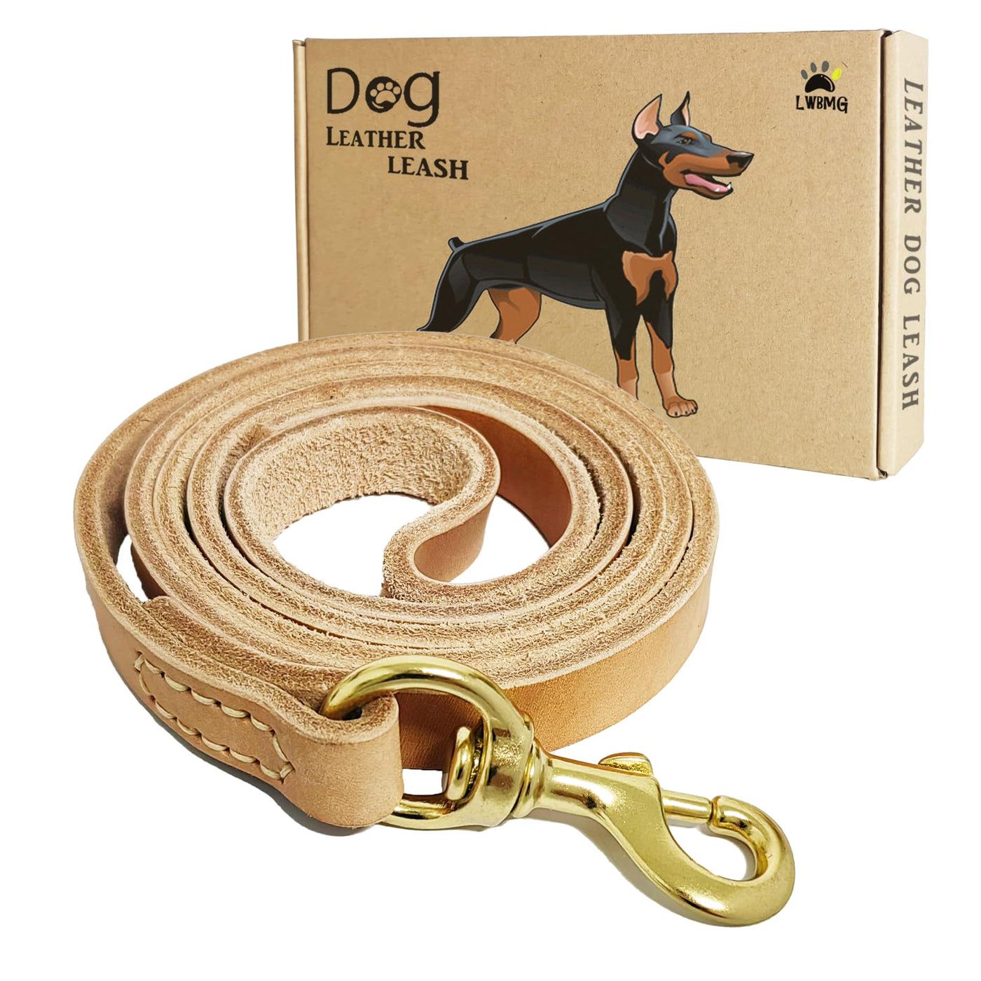 Lwbmg Leather Dog Leash 6 Ft X 3/4 Inch - Soft And Strong For Medium And Large Breeds - Heavy Duty Training Leash In Tan