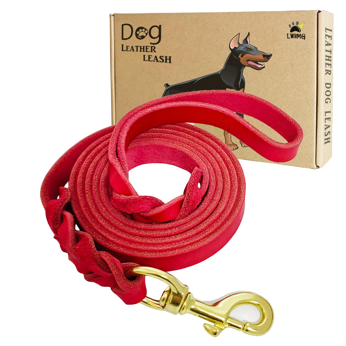 Lwbmg Leather Dog Leash - 6Ft Heavy Duty, Braided, Comfortable For Large, Medium & Small Dogs - Red