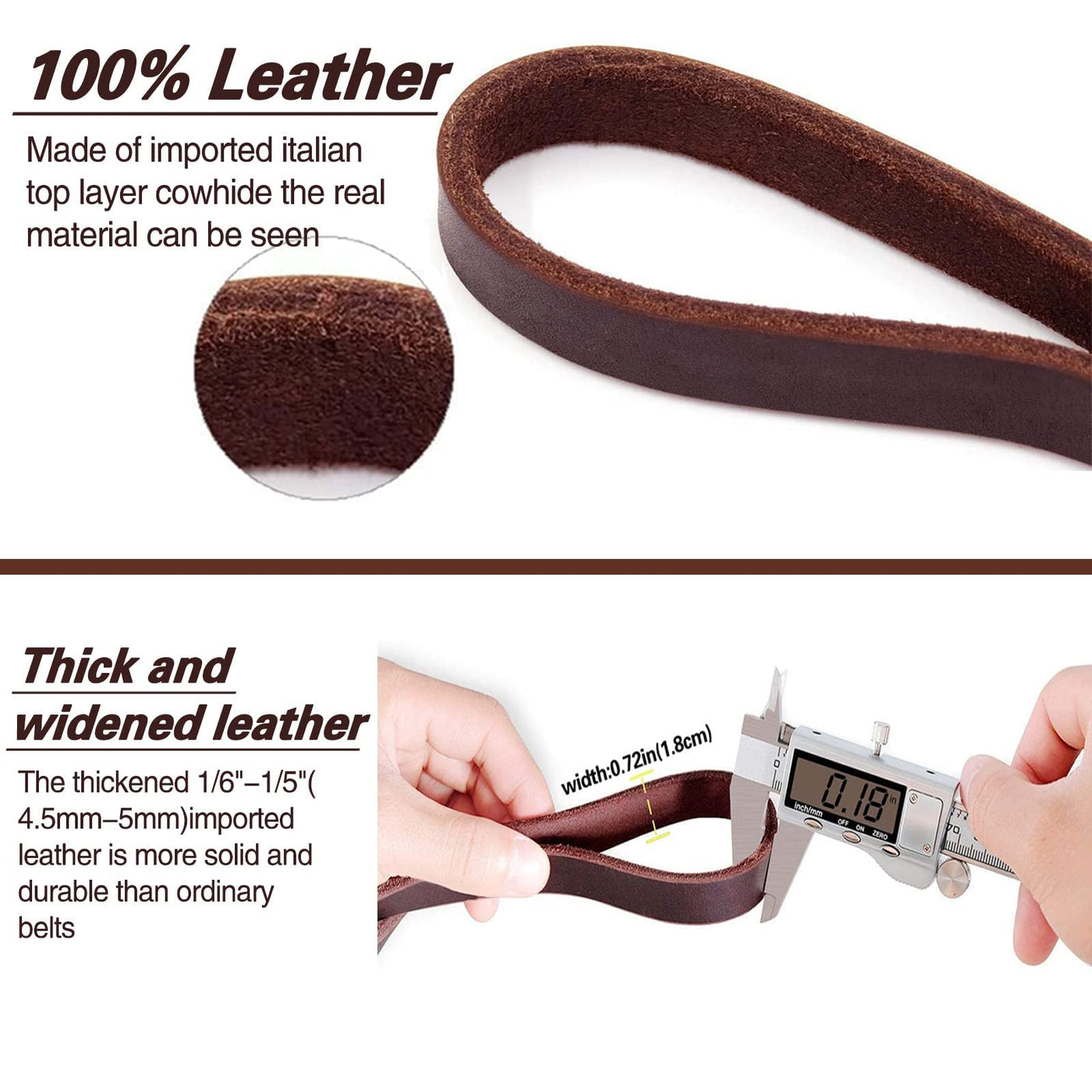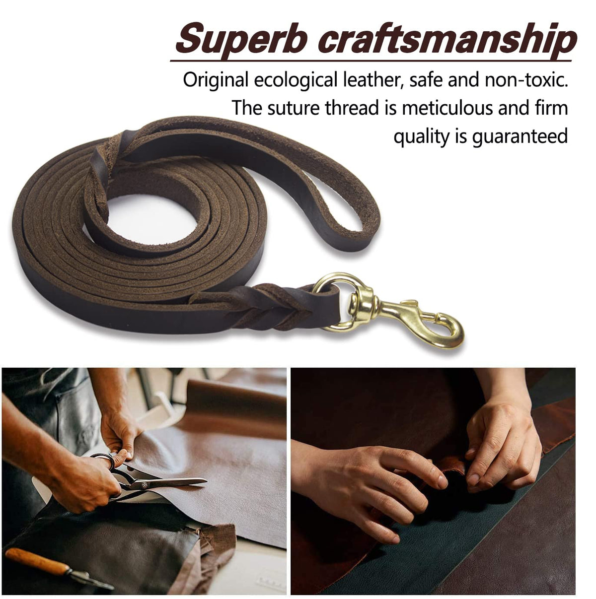 100% leather-34AA8ft dog training leash is made of real imported Italian leather This hand-woven dog leash is more elastic and more fashionable Handmade strong tensile strength and durable Pure copper hook-high-quality electroplating process outstanding appearance simple and practical strong tensile strength can bear 600 pounds of tensile force and can be easily tied to a dog collar or chest strap The extended dog leash is more comfortable The 8-foot length makes it easier for you and your dog to walk in your backyard or street and better control your dogs behavior Ideal for training walking and running The best rope for dog training-suitable for all kinds of dogs such as Pomeranian Pug Shih Tzu Bichon Frise golden Retriever Labrador german Shepherd Bulldog Police Dog etc Service commitment-please rest assured to use we provide quality assurance if you have any questions please feel free to contact us