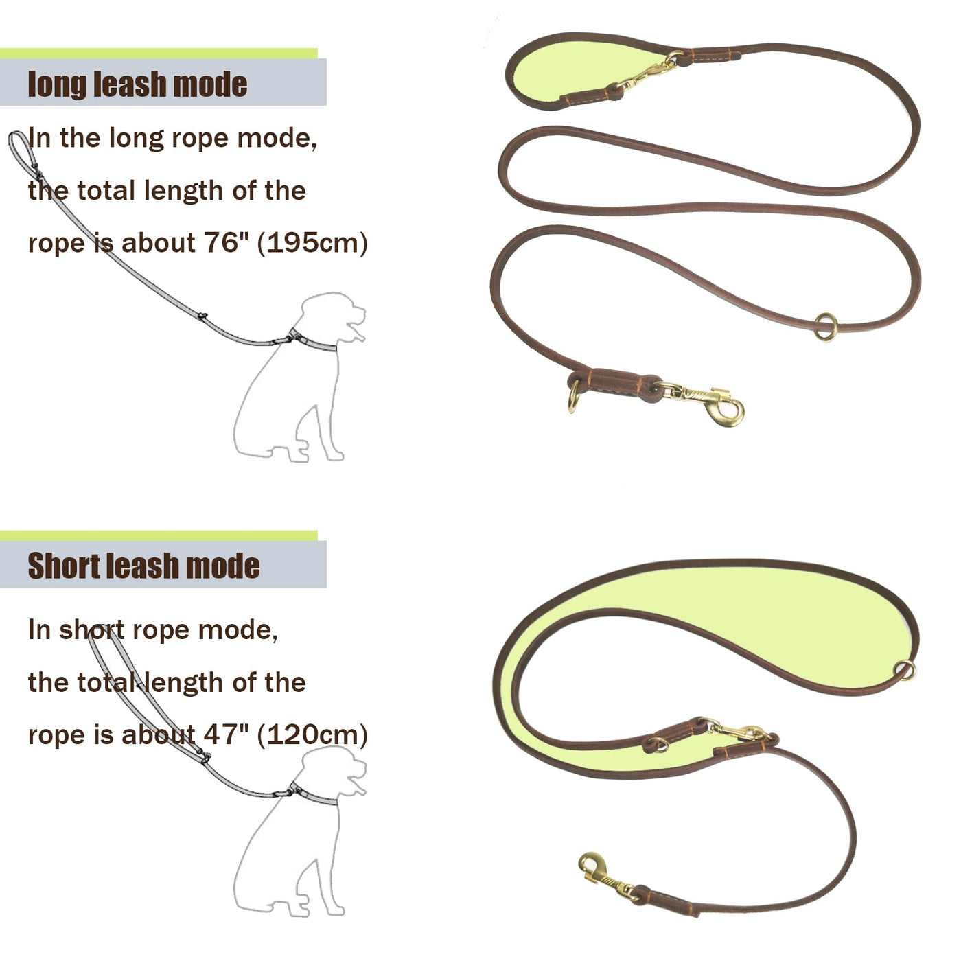 Why Choose Lwbmg Leather Dog Leash:Lwbmg Are Engaged In Providing High Quality Pet Supplies On Amazon Over 10 Years. This Multifunction Leather Dog Leash Has 8 Ways To Use. The Rust-Proof Brass Clasp That Adds Durability And A Smooth And Shining Look. This Leather Dog Training Leash Is Hand Stiching On Both Ends To Offer A Fashionable And Beautiful Finish While Maintaining The Strength. The Heavy-Duty Dog Leash Has 3 Size To Choose, Is Ideal For Daily Walking And Training Of Small Medium And Large Sized Dogs.This Leather Dog Leash Is Made Of Selected Soft Full-Grain Leather In Clear Texture And Has With Good Tensile Force.Important Notes1.Avoid Pet Chewing Or Biting;2.Store It In Dry And Cool Places And Keep It Away From Fire, Heat And Chemicals;3.Do Not Wash, Bleach Or Iron It.