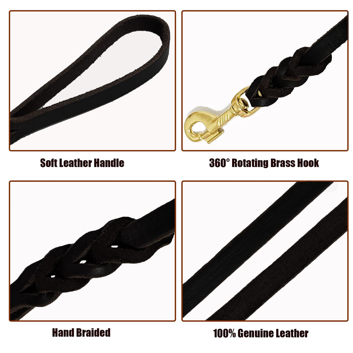 Lwbmg Long Leather Dog Leash 10Ft,Long Line Pet Leashes,Strong Sturdy Genuine Leather Braided Dog Lead, Soft And Comfortable Lea