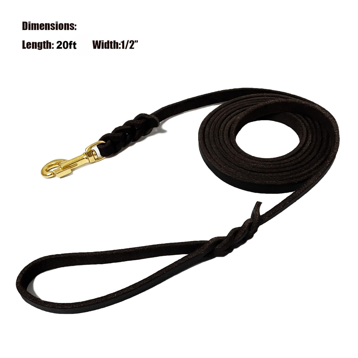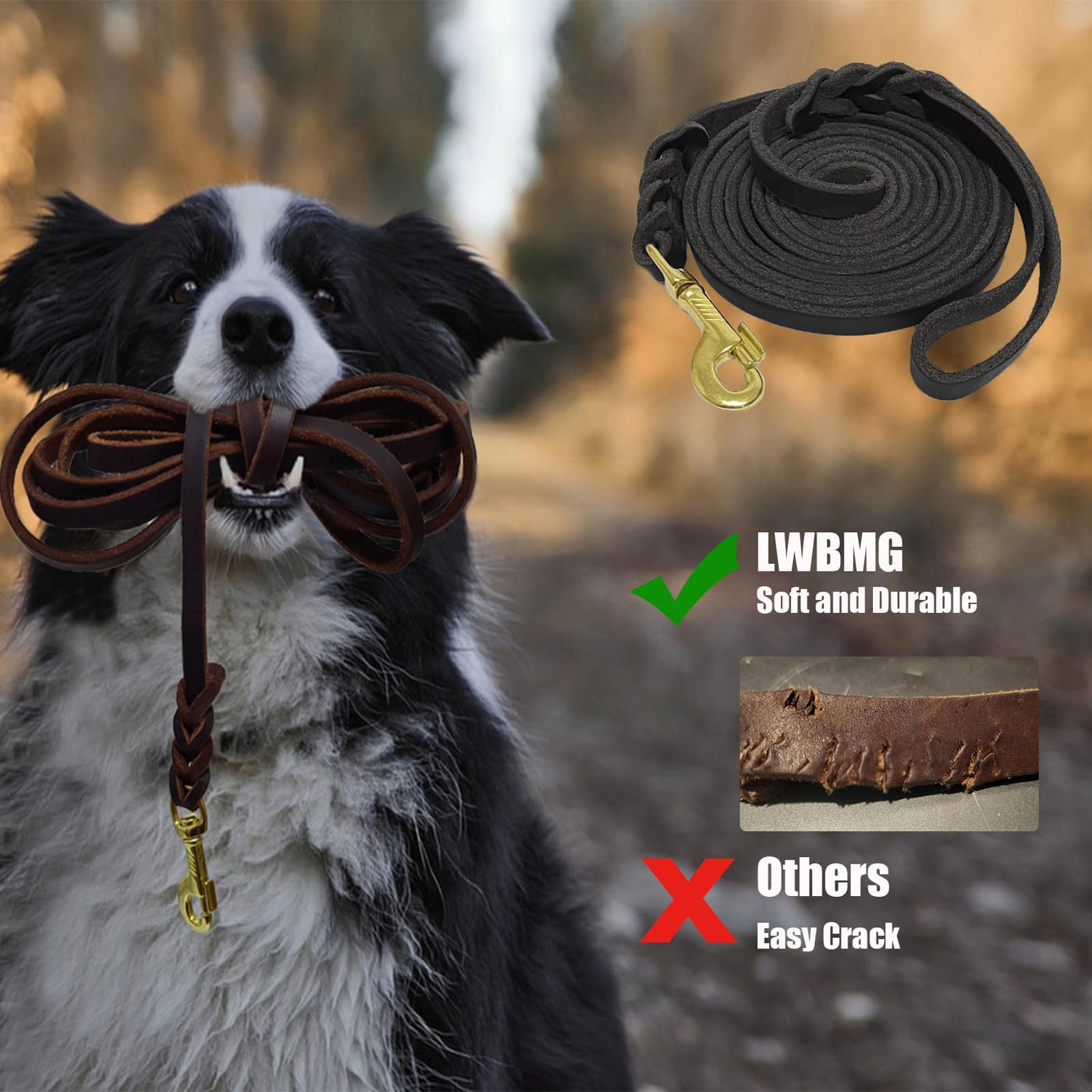 Lwbmg Long Leather Dog Leash 20Ft,Long Line Pet Leashes,Strong Sturdy Genuine Leather Braided Dog Lead, Soft And Comfortable Lea