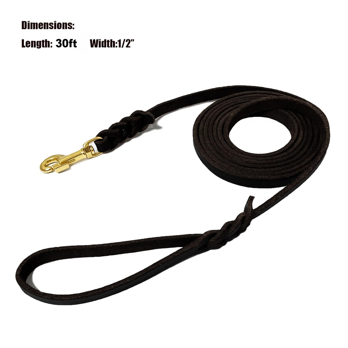Lwbmg Long Leather Dog Leash 30Ft,Long Line Pet Leashes,Strong Sturdy Genuine Leather Braided Dog Lead, Soft And Comfortable Lea