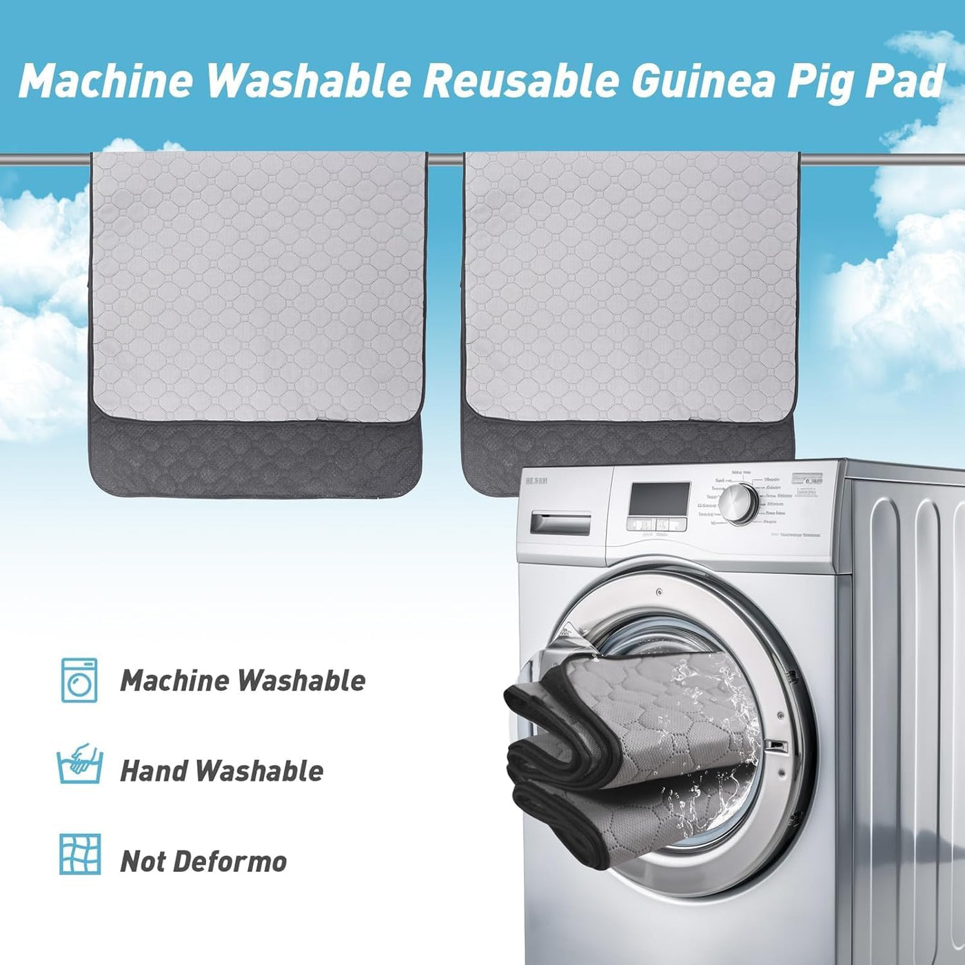 High Quality and Durability This guinea Pig Fleece cage Liners is lined with breathable waterproof PUL inner layer and The bottom is equipped with anti-slip drop plastic Our guinea Pig Pee Pads can be cleaned after washing and are durable Washable and reusable This washable pee pad is specially designed to be washed and reused for 400 times in a washing machine There is no need to clean dirty things by hand 2 packs in one package is cost effective and convenient to replace it when the other one is cleaned Excellent absorbability and odor control This guinea Pig Fleece cage Liner is designed to lock in water immediately prevent urine from leaking and ensure nighttime dryness This pet pee pad is aimed to keep your floor carpet and home clean and dry Multi-purpose This guinea Pig Pee Pad is popular in guinea pigs rats hamsters hedgehogs chinchillas ferrets bunnies rabbits and so on Placing this absorbent pee pad directly on the floor sofa car seat bed or cage will help keep your pets feet clean and dry Non-slip bottom design The enhanced non-slip rubber back liner of the guinea Pig Fleece cage Liner also enables to lengthen the maximum time of the mat to stay on the bed or floor making it easier for puppies to crawl which is ideal for training and feeding guinea pigs and other small animals
