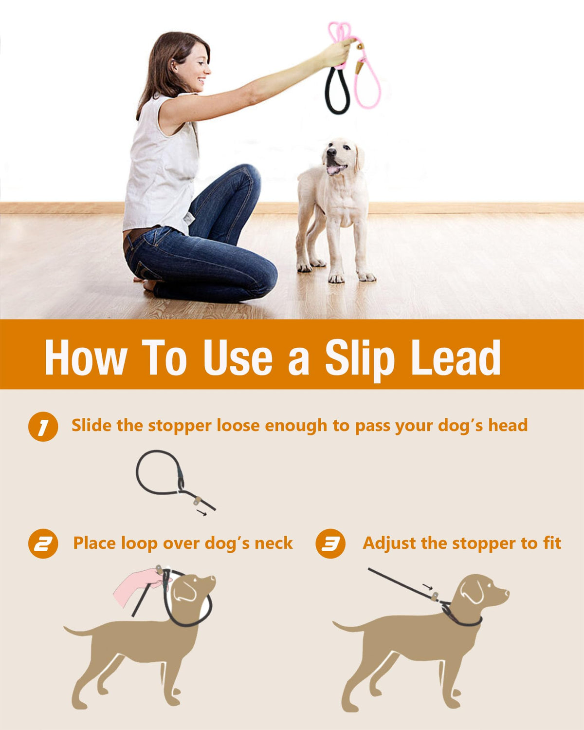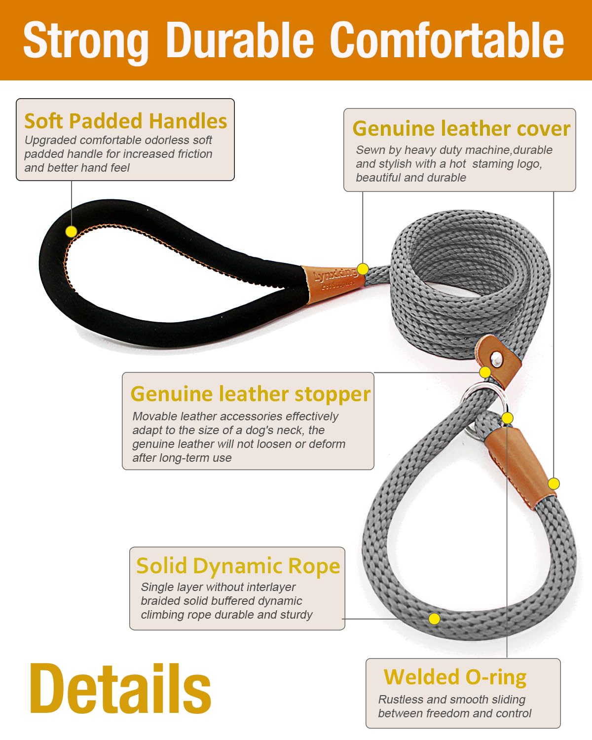 Easy To Use And Convenient- No Collar Or Harness Needed. With The Adjustable Loop And New Added Stopper, Leash And Collar 2 In 1 Design, Extremely Simple And Easy To Put On Or Off. Strong And Lightweight- This Tough Dog Leash Made Of Strong And Heavy-Duty Braided Nylon Rope, Patterned Padded Handle,Super Sturdy Metal Ring, And The Knots Bound With Leather Cover Various Size And Color Choice 1/2 X 6 Ft Perfect Length For Outside Walking, Jogging, Hiking Or Training. Suit For Large, Medium And Small Dogs And Puppies.1/2 Thick Rope Provide Maximum Durability And Comfortable Grip Great For Dog Training- This Slip Lead Dog Leash Tightens When Your Dog Pulls And Loosens When The Behavior Is Corrected. Premium Dog Training Leash To Correct The Behavior Under Control