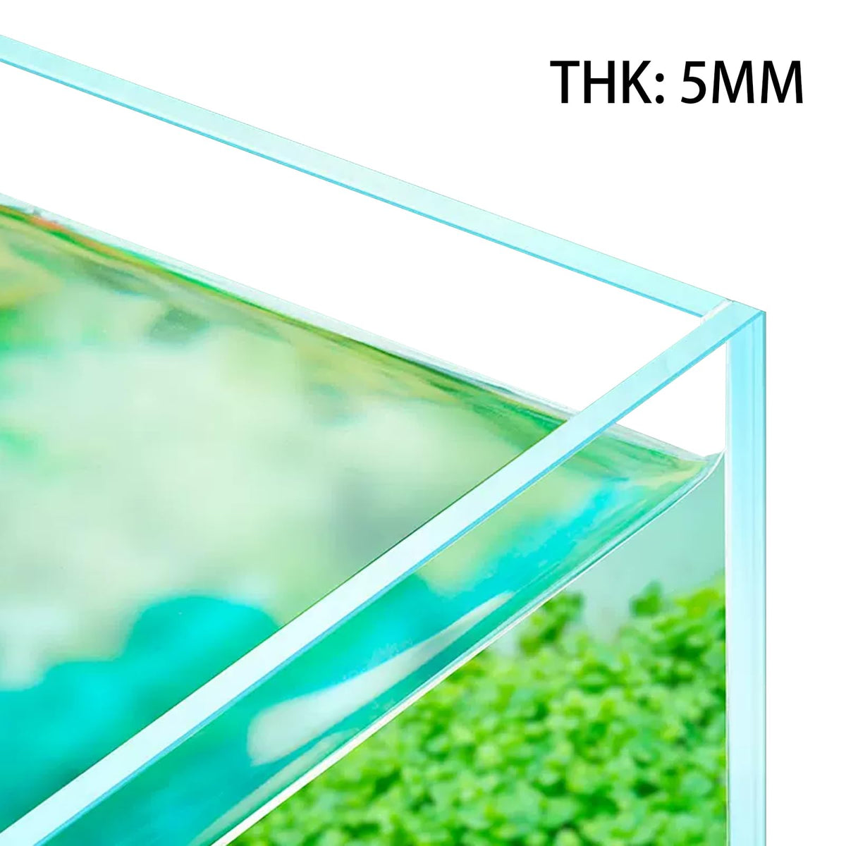 Q: What are the dimensions and specifications of the aquarium?A: The LYPHARD 9.5 Gallon Rimless Aquarium has dimensions of 15.7 inches in length, 11.8 inches in width, and 11.8 inches in height, with a glass thickness of 5mm. It has a net weight of 14.1 lbs and comes packaged with EVA foam leveling mats for easy setup.