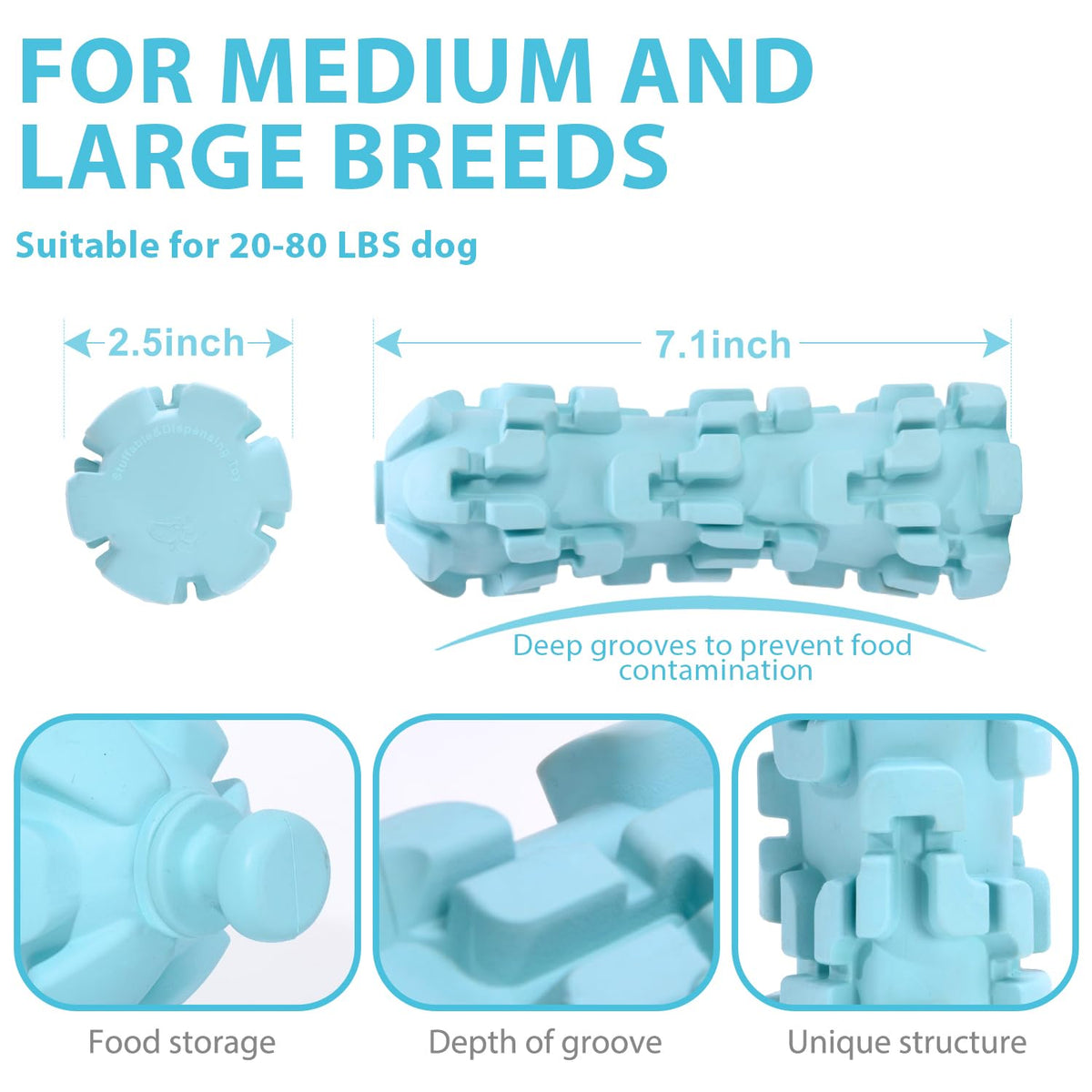 Q: How can this toy help with my dog's anxiety?A: This interactive chew toy serves as a great distraction for dogs, helping to alleviate anxiety and boredom. By engaging your dog in chewing and treat dispensing, it provides mental stimulation and encourages positive behavior.