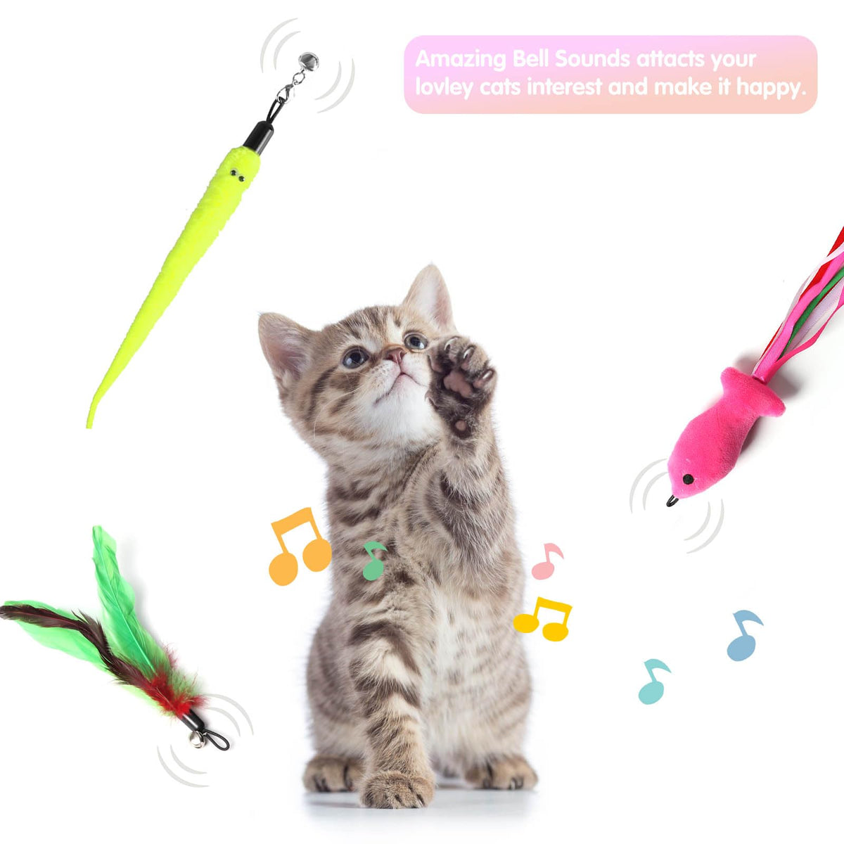 M Jjypet Retractable Cat Toy Wand, 12 Packs Interactive Cat Feather Toys, 9 Assorted Teaser Refills With Bell For Kitten (Pink)