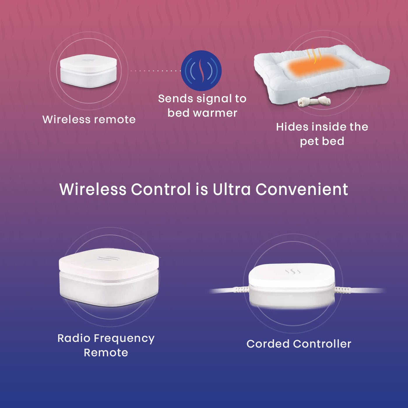 M Pain Management Technologies Hidden Heat Pet Bed Warmer By Spotwarm; Wireless Rf Remote With Microplush Flannel, Small And Lar