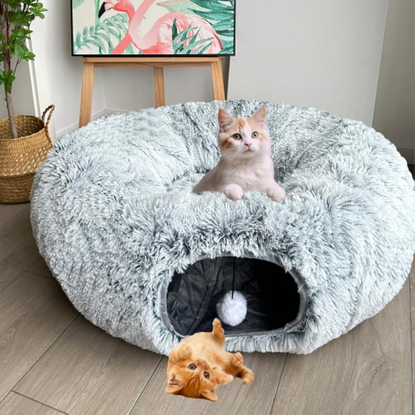 Mabaytir Cat Tunnel Bed For Indoor Cats Grey Plush, Collapsible Play Tube With Removable Cushion, Sturdy Cat Toy Playhouse, Soft