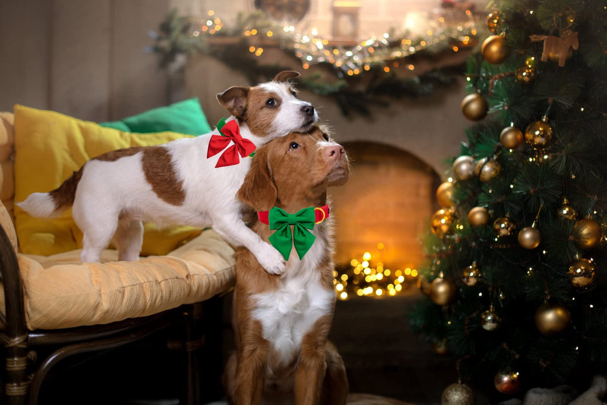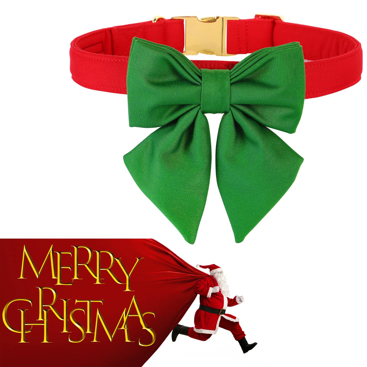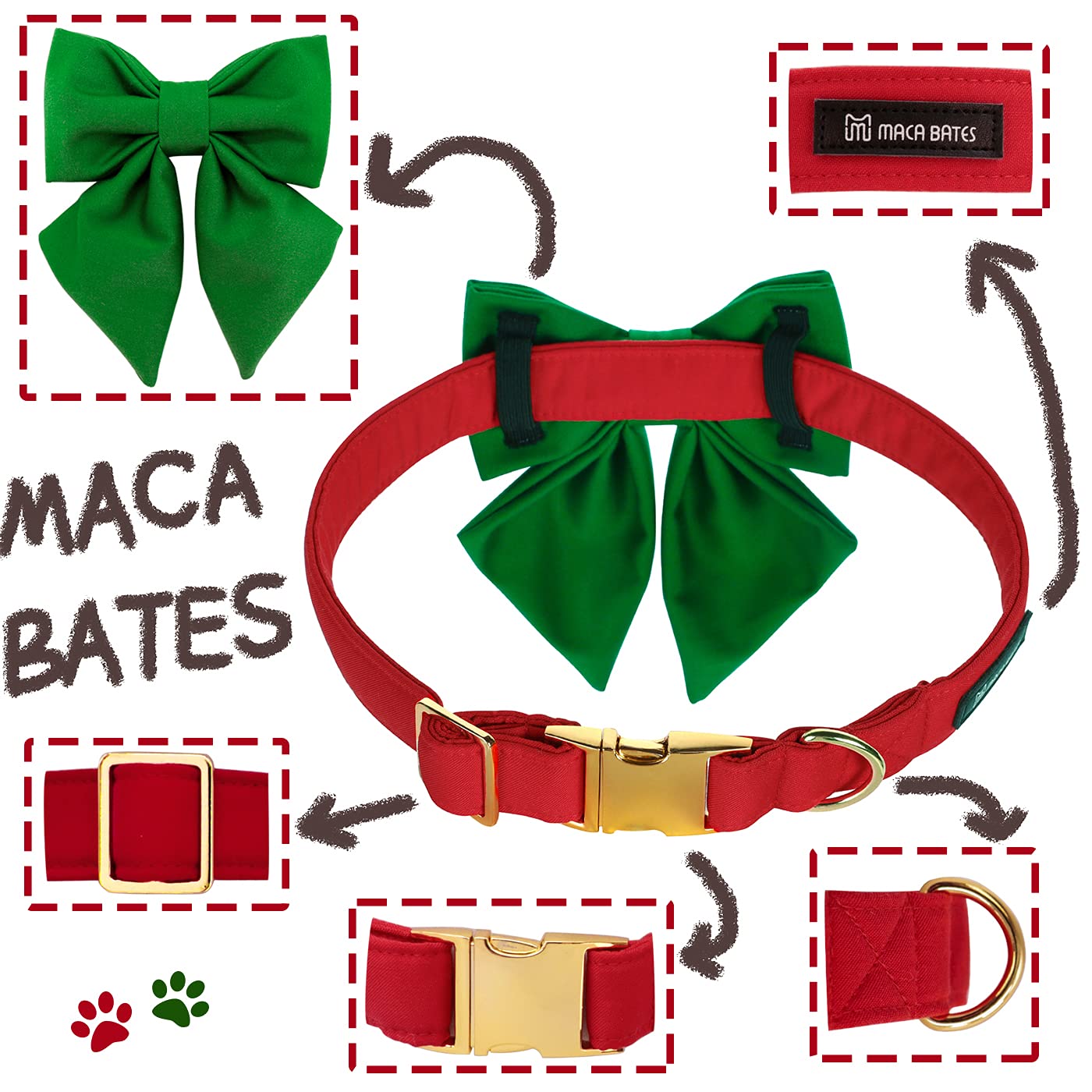 Maca Bates Christmas Dog Collar with Bow Bowtie for Dogs Sailor Bow Tie Adjustable Breakaway Red Green Collars Accessories Gift for Small Medium Large XL Puppy with Golden Metal Buckle