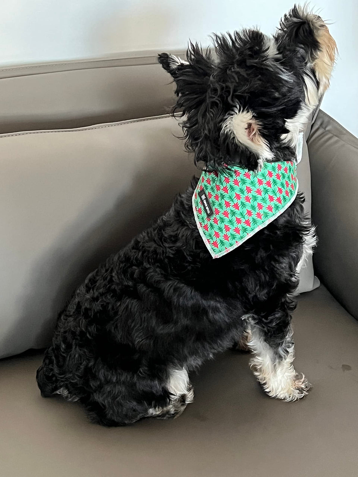 Q: How should I care for the MACA Bates dog bandana?A: The MACA Bates dog bandana is machine washable for easy care. It is recommended to wash it at low temperatures and use a low-temperature iron if necessary to maintain its appearance.