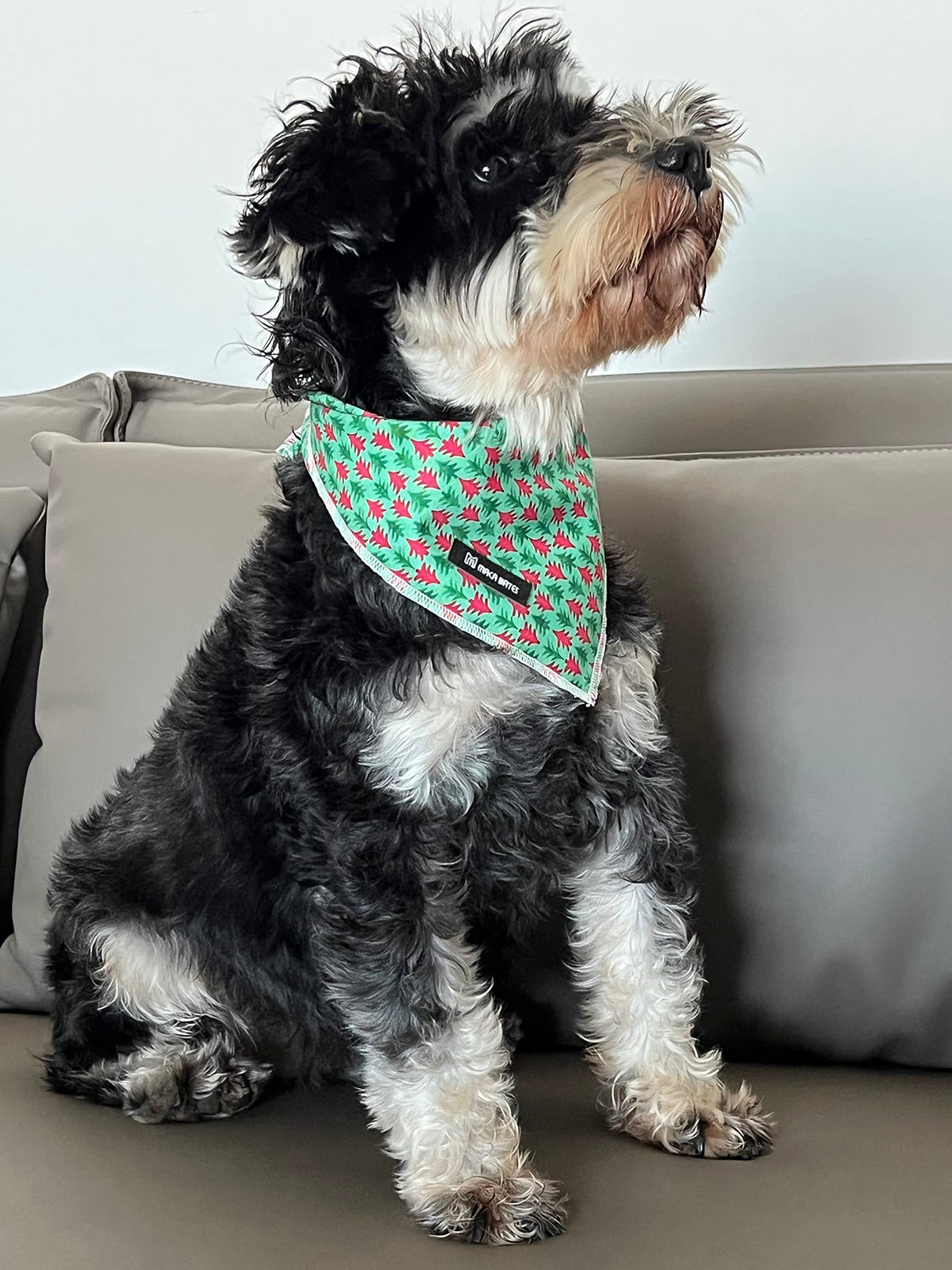 Q: What material is the MACA Bates Christmas Dog Collar made from?A: The MACA Bates Christmas Dog Collar is handmade from high-quality fabric that is lightweight and breathable, ensuring comfort for your dog without putting stress on their neck.