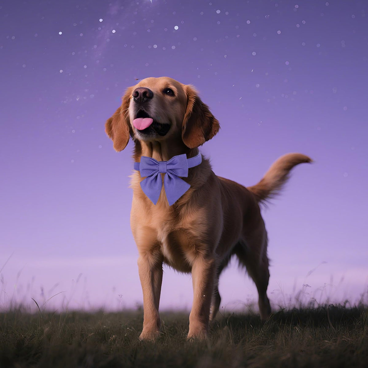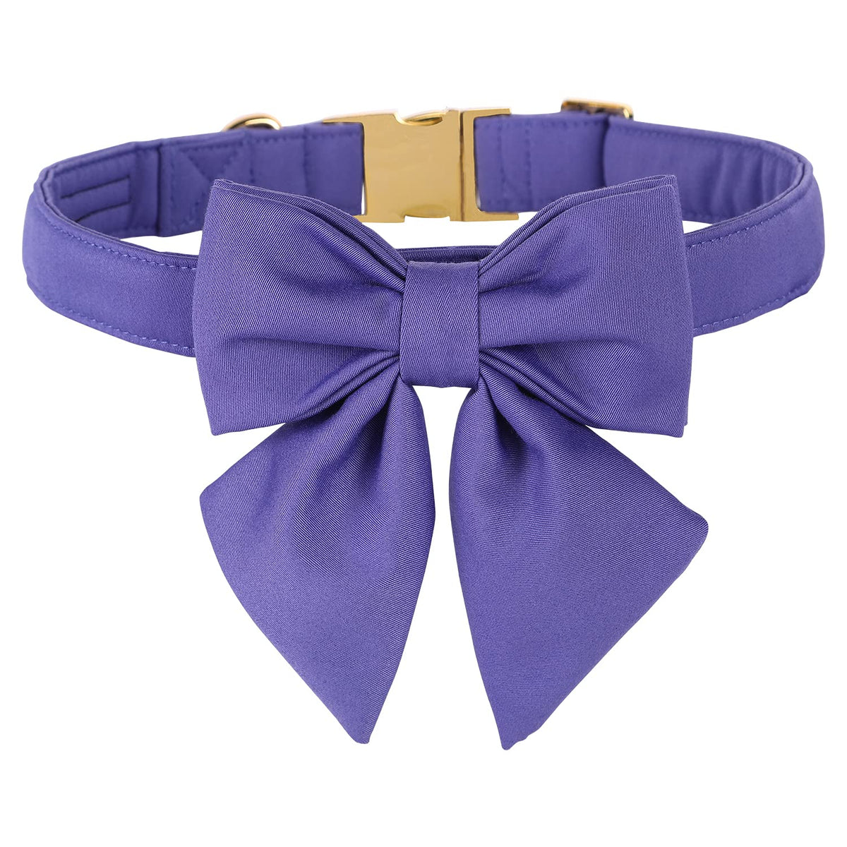 Maca Bates Dog Collar with Bow Bowtie for Dogs Solid Colors Sailor Bow Tie Adjustable Breakaway Purple Collars Accessories Birthday Gift for Small Medium Large XL Puppy with Golden Metal Buckle