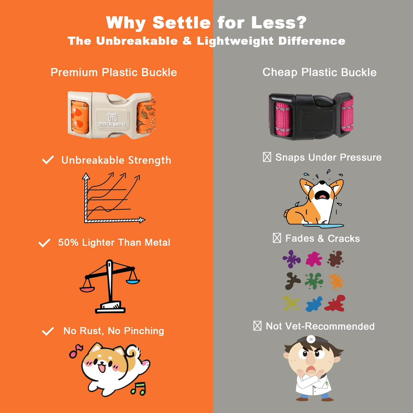 Precision Sizing For All Dogs Available In Five Sizes: Xs (8-12In/20.3-30.5Cm, Width: 5/8In/1.5Cm) S (11-16In/28-41Cm, Width: 4/5In/2Cm) M (14-21In/36-54Cm, Width: 1In/2.5Cm) L (15-23In/39-60Cm, Width: 1In/2.5Cm) Xl(16-26In/42-66Cm,Width:1In/2.5Cm). Measure Your Dogs Neck And Add 1-2 Inches For A Secure Yet Gentle Fit, Ensuring Comfort For Puppies To Full-Grown Companions. Safety Engineered For Peace Of Mind Our Ultra-Durable Plastic Buckle Undergoes Rigorous Lab Testing To Withstand 150Lbs Of Force - Lightweight, Rust-Proof, And Designed With Smooth Edges To Prevent Pinching Or Accidental Openings. Comfort Meets Camera-Ready Style Crafted With Breathable Cotton And A Padded Inner Lining, This Collar Prioritizes All-Day Comfort While Resisting Scratches. The Charming And Vibrant, Fade-Resistant Prints Add Playful Flair, Making Every Walk A Photo-Worthy Moment. Dont Miss Out - Give Your Furry Friend The Gift Of Confidence And Camera-Ready Charm Today!