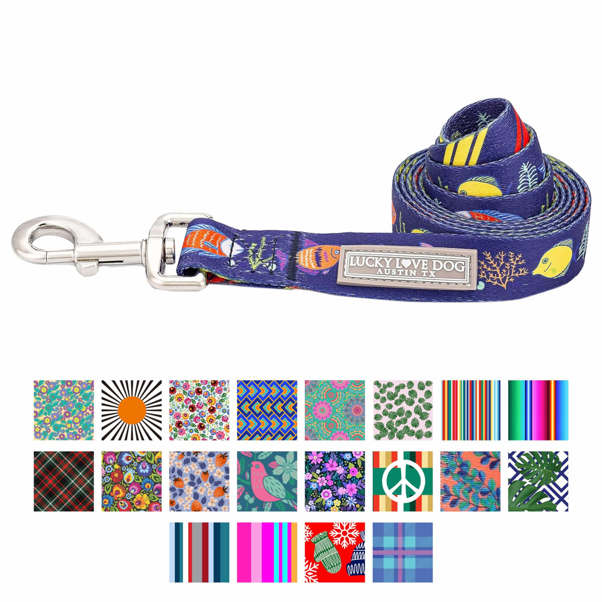 Mackey Large Dog Leash - Tropical Fish Pattern, Blue Color, Durable & Long Lasting