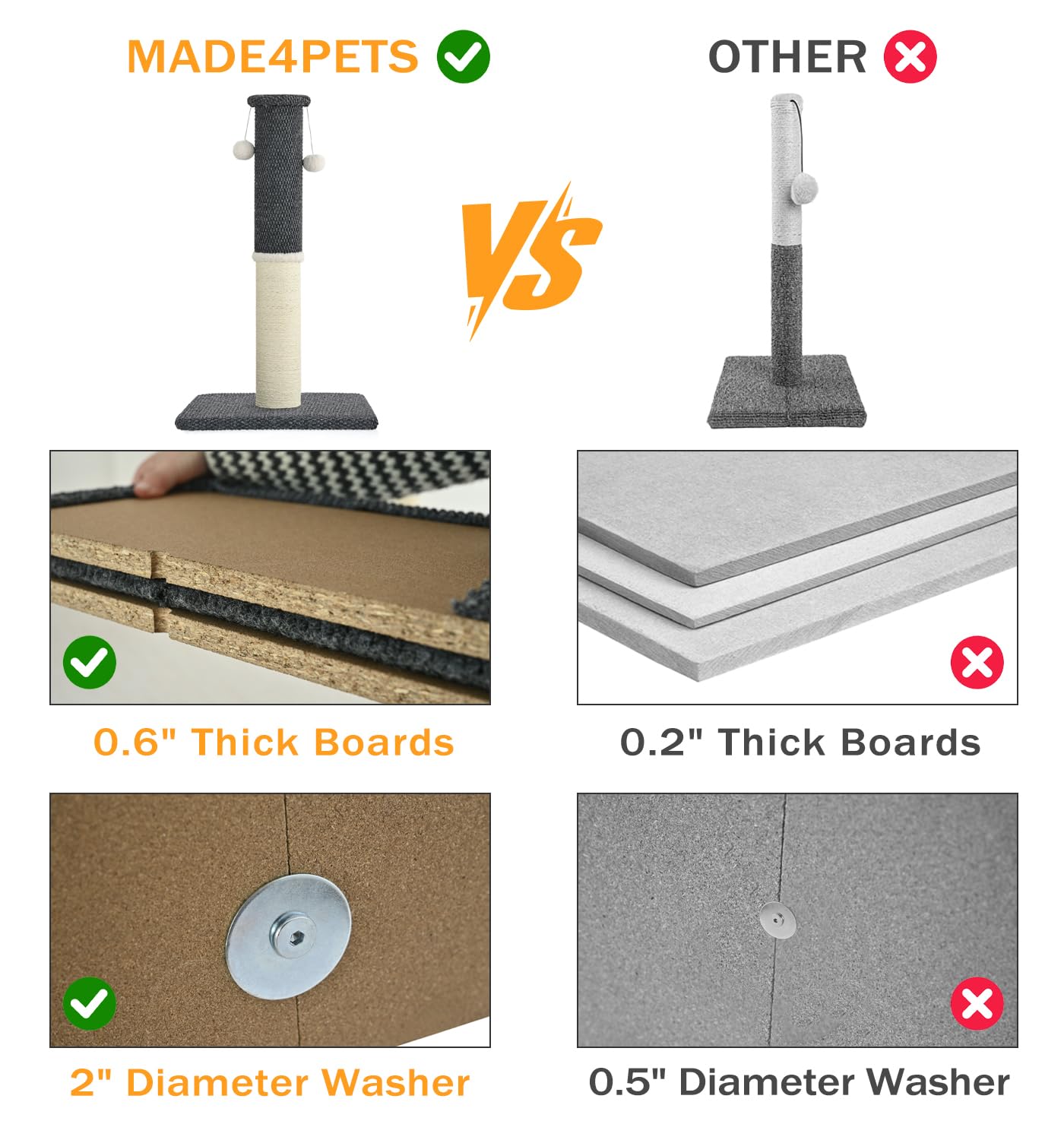 Made4Pets Cat Scratching Post 33', Tall Scratching Posts For Indoor Cats Adults Natural Sisal Rope Cat Scratcher With Replaceme