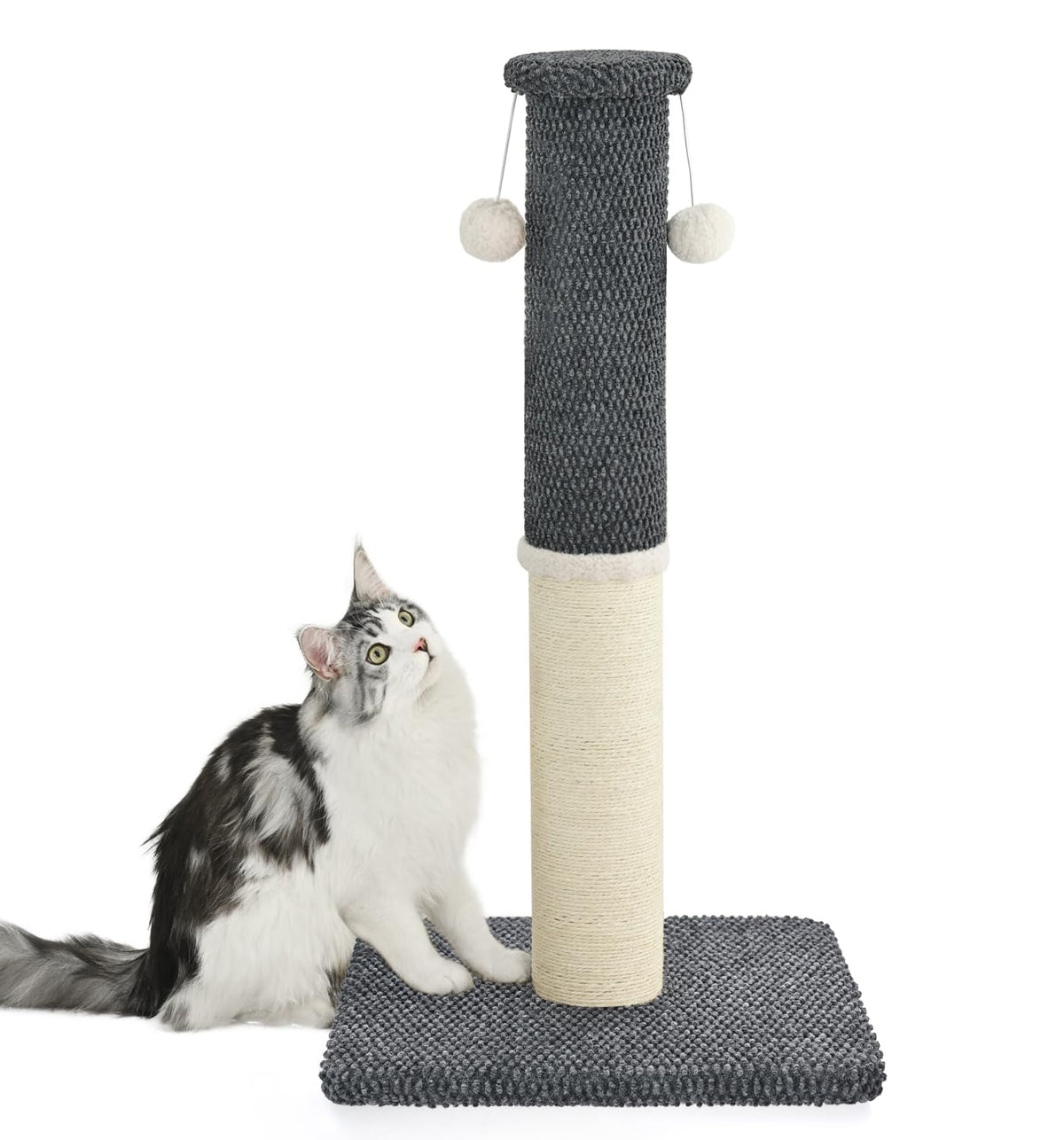 Elevate Your Cats Scratching And Playtime With Our 34-Inch Premium Cat Scratching Post, Designed For Durability, Comfort, And Entertainment. Made With A Solid Wood Core And Reinforced Base, This Sturdy Post Provides Stability Even During The Most Energetic Scratching Sessions. The Soft Carpeted Surface Is Gentle On Your Cats Paws While Protecting Your Furniture, And The Combination Of Carpet And Sisal-Wrapped Sections Offers Multiple Scratching Options To Cater To Your Cats Preferences. At The Top, Replaceable Interactive Balls Add An Extra Layer Of Fun, Keeping Your Cat Engaged And Encouraging Regular Use. Easy To Assemble With All Tools Included, This Scratching Post Fits Seamlessly Into Any Home Decor, Offering A Stylish Yet Functional Solution For Both Small And Large Spaces. Built To Withstand Daily Use, It Provides Long-Lasting Durability, Helps Maintain Healthy Claws, And Satisfies Your Cats Natural Instincts To Scratch And Play. Whether Youre Looking To Protect Your Furniture, Entertain Your Cat, Or Give Them A Designated Scratching Space, This Post Has Everything Your Cat Needs To Stay Happy And Healthy.