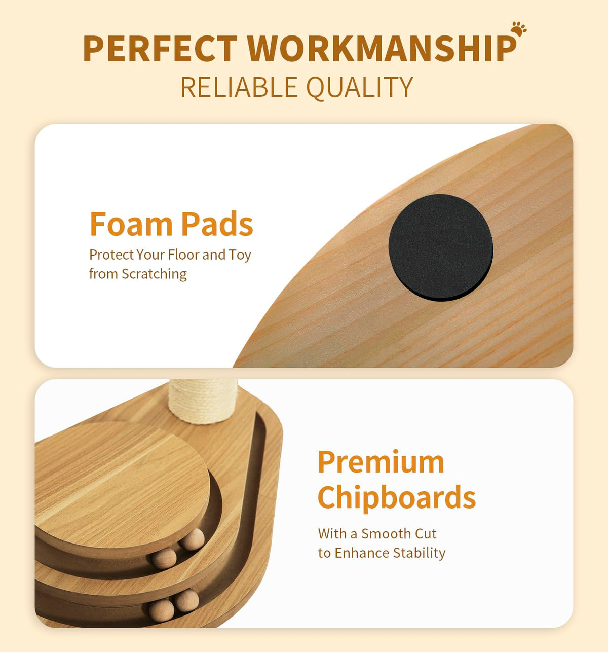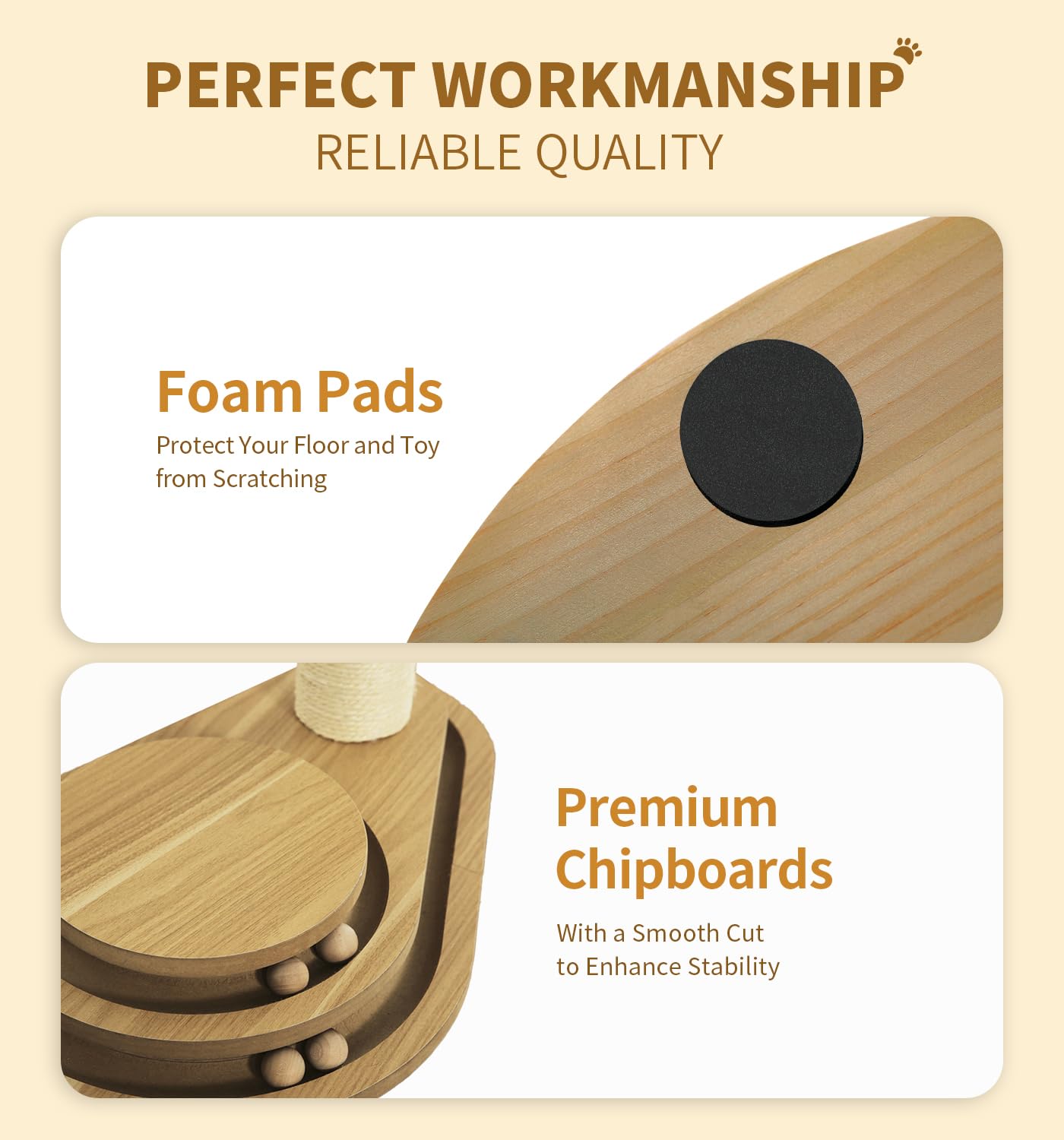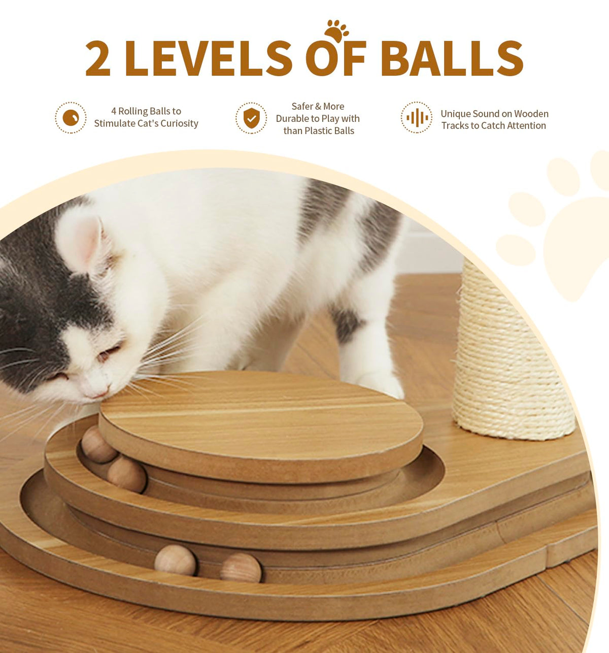 Made4Pets Cat Scratching Post Cat Scratcher Kitten Toys For Indoor Cats Wooden Ball Track Two-Layer Modern Sisal 23.4' Tall Scr