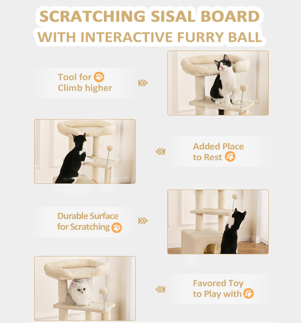 Cat Tree 3-Tier Multifunction Cat Tree With Cats Posts (Cat Scratch Post) And Kitty Condos For Indoor Cats Is Designed For All Cats And Kittens. Aka, Cat Posts And Scratchers, Cat Posts And Scratchers Towers, Cat Scratching Tower, Cat Stands For Indoor Cats, Cat Tower For Indoor Cats Large, Cat Tree For Indoor Cats Large, Kitten Tree. Cat Houses For Indoor Cats Satisfy Cats' Natural Instincts And Daily Needs In Jumping, Sleeping, Hiding, Overlooking And So On. The Scratching Posts For Indoor Cats, The Kitten Scratching Post, The Cat Post For Indoor Cats, Cat Tree Scratching Post, Cat Tree With Scratching Post, Provide A Perfect Place For Them To Sharpen Their Claws. The Board Scratchers Are Not Only Used For Scratching But Also For Rubbing And Jumping Higher. They Can Play And Chase Each Other In This Cat Playhouse. Although The Small Cat Tower, Small Cat Tree, Corner Cat Tree Is A Short Cat Tree, Casas Para Gatos, With Large Top Perch And Condo, It Can Also Serve As Large Cat Tower Or Cat Towers For Extra Large Cats, Cat Tree For Large Cats. This Cat Tower Small But Useful. Those Cats Being Satisfied With The Small Cat Tree For Indoor Cats Or The Cat Towers Indoor Cats, Have Less Possibility Of Damaging Your Home Furniture. To Decorate Your Wall, Window, Balcony, This Cat Tower Modern Designed Is A Good Gift For Your Home As Well. Get This Cat Tree For Your Furry Friends.