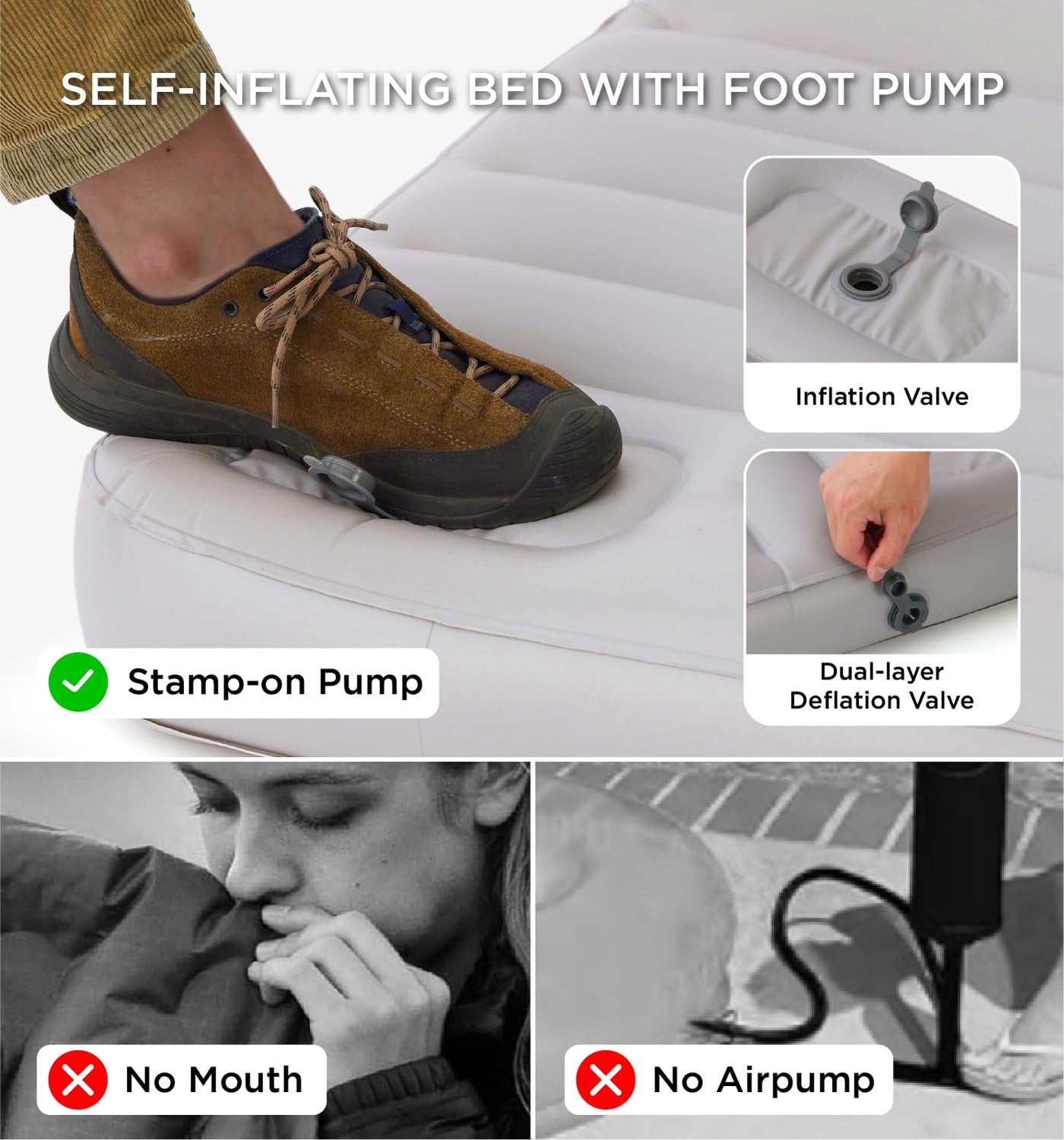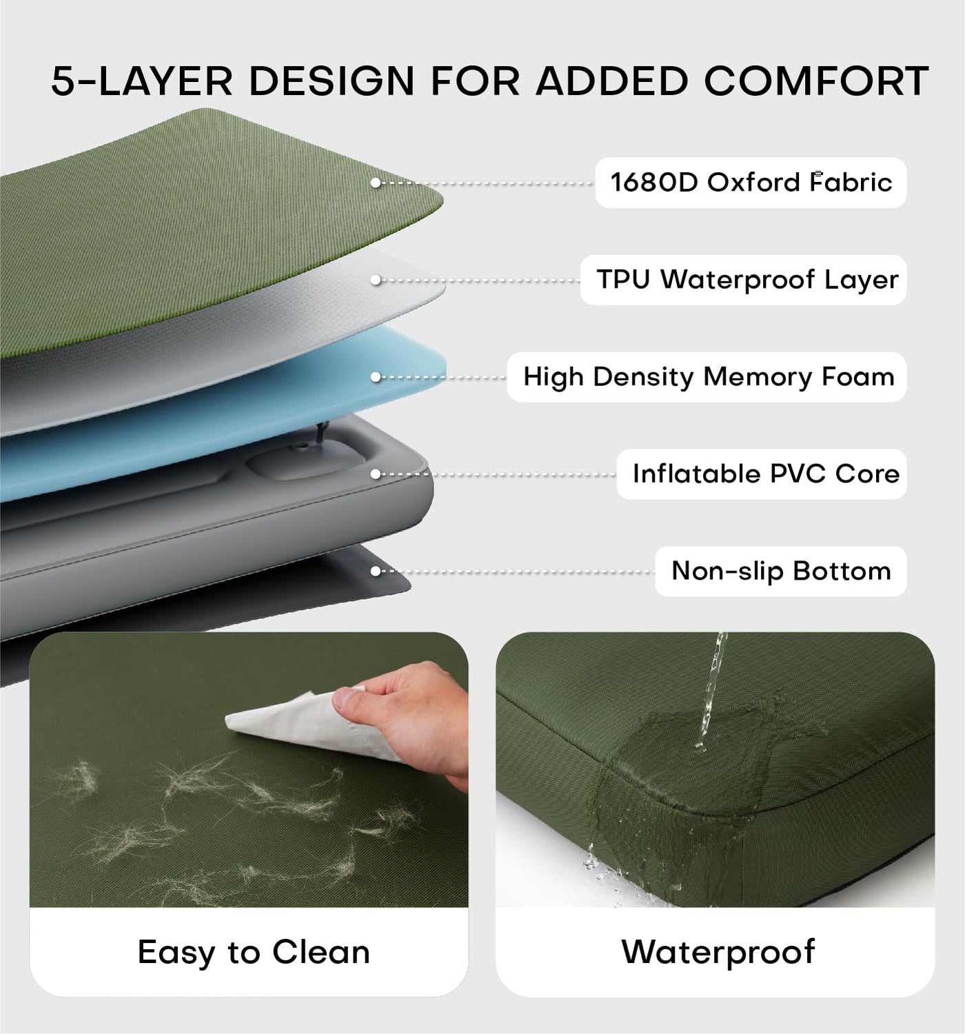 This Inflatable Dog Bed Offers Instant Comfort With A Built-In Foot Pump-Fully Inflated In Under 1 Minute. Designed For Indoor And Outdoor Use, Its Perfect For Camping, Road Trips, Or Home Lounging. The Outdoor Dog Bed Waterproof Design Repels Water, Mud, And Pet Hair For Easy Cleaning. Its Durable 1680D Oxford Fabric And Multi-Layer Support Provide Memory Foam-Like Comfort That Travels Anywhere. Foldable, Portable, And Adventure-Ready-Give Your Pup A Cozy Spot Wherever Life Takes You.