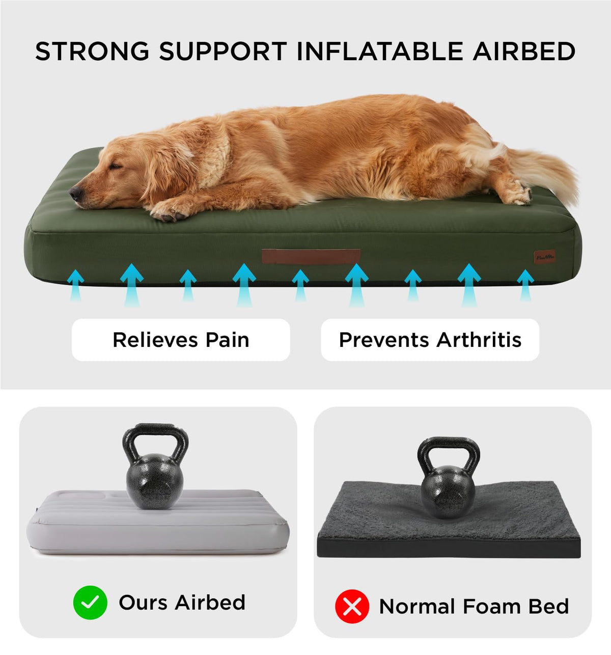 Made4Pets Inflatable Dog Bed Outdoor Waterproof - Self-Inflating Dog Camping Bed For Medium To Large Breeds, Heavy-Duty Oxford F
