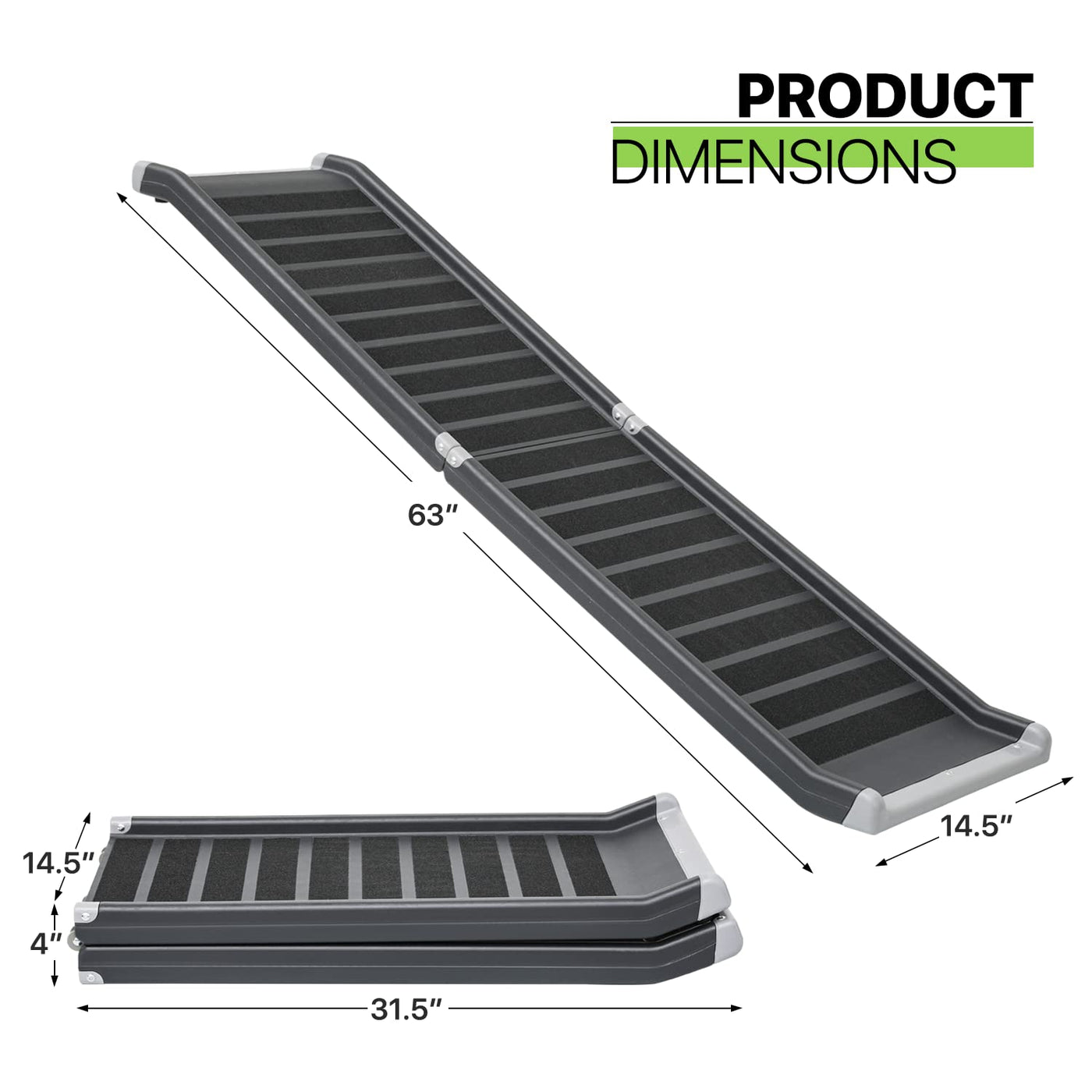 Magshion Folding Dog Ramp For Large Dogs, 63 L Portable Pet Ramp For Cars & Trucks, Non Slip, Metal Frame, Raised Siderails, E