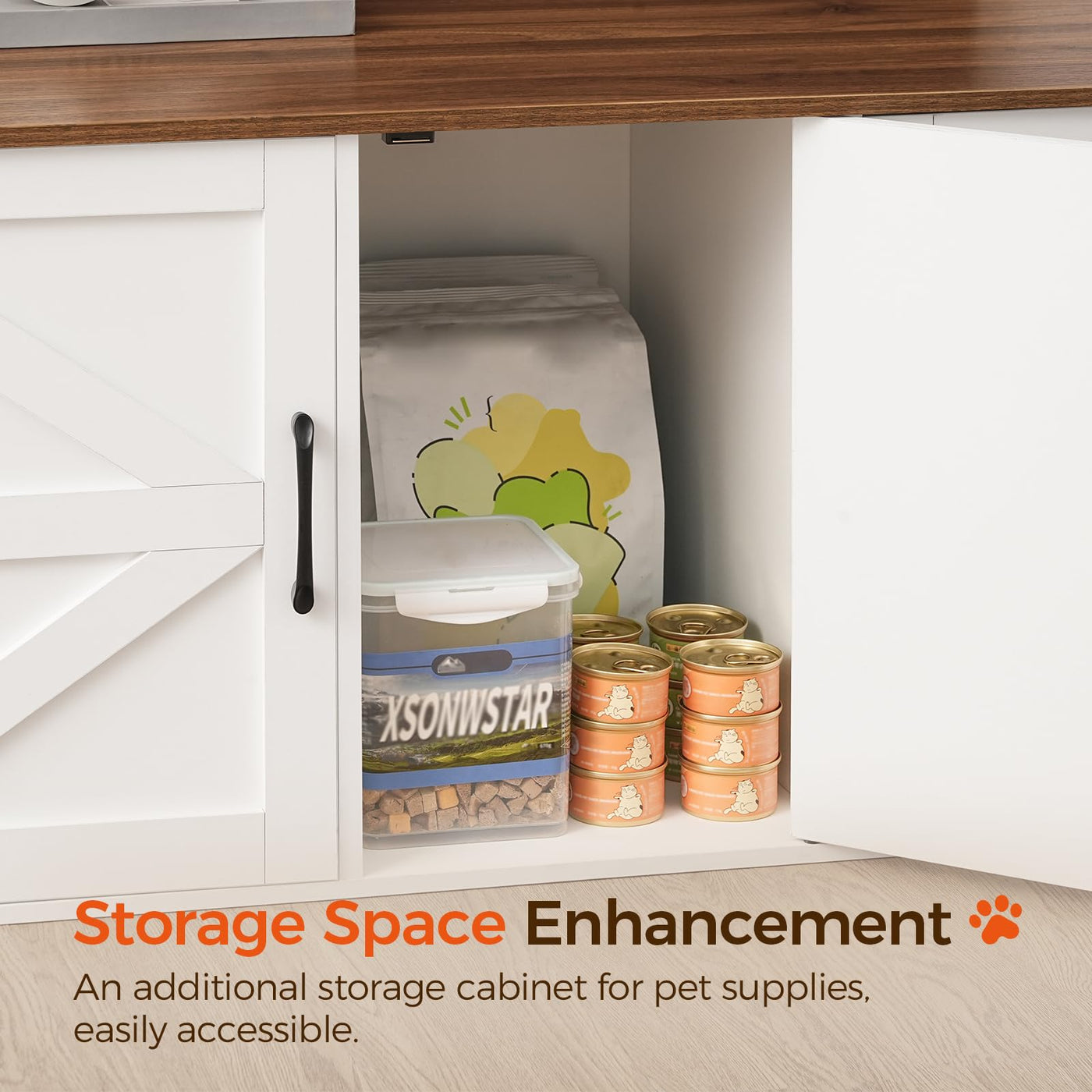47.2 Hidden Litter Box Furniture for 2 Cats This concealed cat litter box enclosure serves as a private washroom and a cozy home for your cat, versatile and utility. With a clean and elegant exterior, it can function as a coffee table or TV stand, fitting perfectly in living rooms, balconies, bedrooms, or entryways. It provides a private and comfortable space for your feline friend, effectively concealing the litter box while also helping to control odors and maintain fresh air. The dual-cat litter house design allows for simultaneous use by two cats, each with their own private space, or you can place a cat bed on one side, creating a luxurious cat apartment for your pets. Specifications: Color: White, Walnut Material: Engineered Wood, MDF Product Size: 47.2L x 20.0W x 20.0H Product Weight: 43.5 lb Max. Static Load Capacity of Top: 180 lb Package Contents: 1 x Cat Litter Box Enclosure 1 x Accessory Kit 1 x Instructions MAHANCRIS Notes: Follow the instructions for the assembly of the product. Children are prohibited from climbing or standing on the product for safety reasons.
