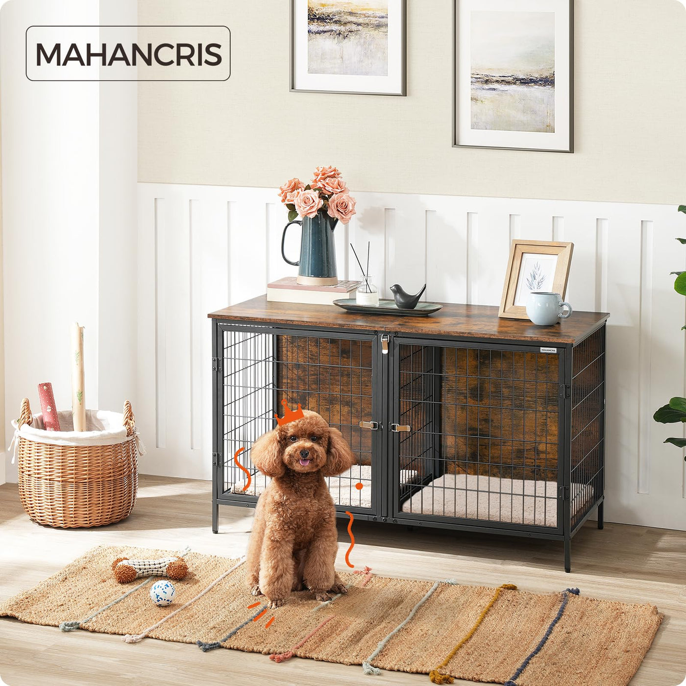 MAHANCRIS Dog Crate Furniture for 2 Dogs, 43.3 Dog Kennel with Removable Divider, Heavy Sturdy Dog Furniture Style Double Cage f