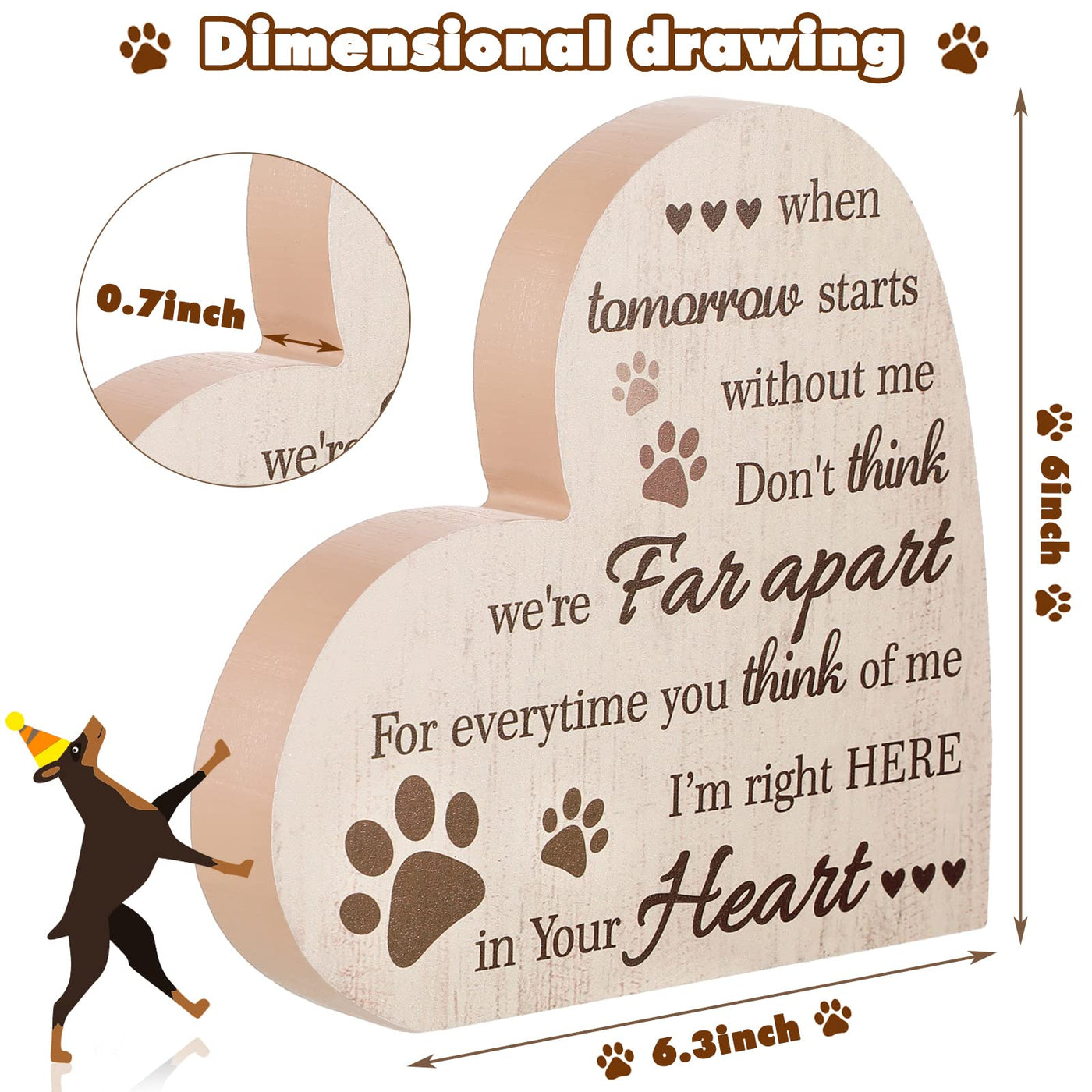 Features: When Someone You Care About Lost The Loved One, Show Your Feelings With Action. Show Your Sympathy And Comfort By Giving Or Sending This Dog Sympathy Gift. The Dog Memorial Gift Is A Cute And Delicate Decoration For Your Table, Shelf, Fireplace And Other Places, Leaving Beautiful Memories And Not Taking Up Much Space. Specifications: Color: As Pictures Shown Material: Wood Size: About 15 X 16 X 1.8 Cm/ 5.91 X 6.3 X 0.71 Inches Package Includes: 1 X Pet Sympathy Gift Warm Notice: Manual Measurement, Please Allow Slight Errors In Size. The Colors May Exist Slight Differences Due To Different Screen.
