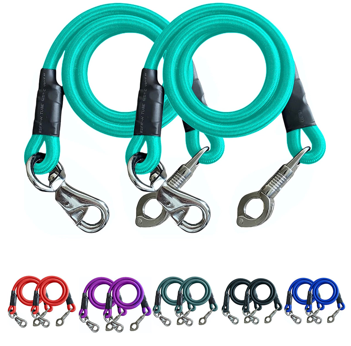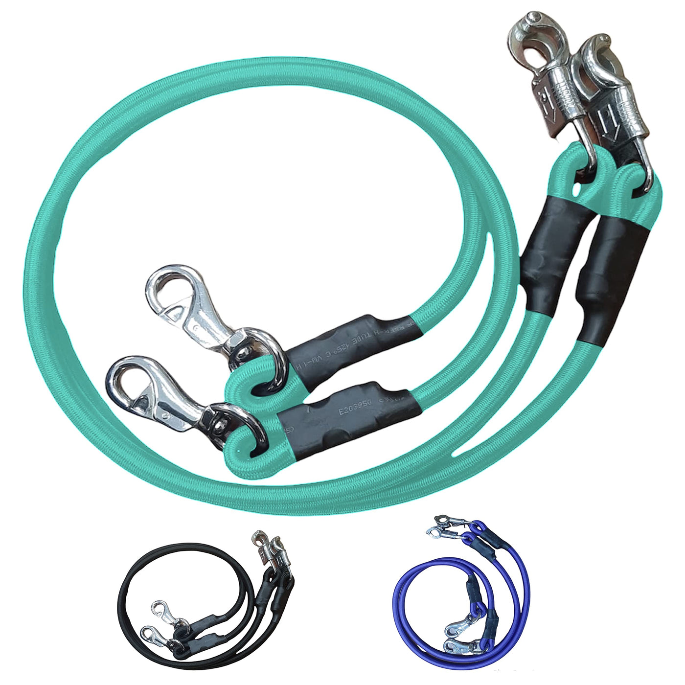 Majestic Ally Pack of 2, Bungee Trailer Tie for Horse Haulage with Panic Snap and Bull Snap - 36 Inch (Turquoise)