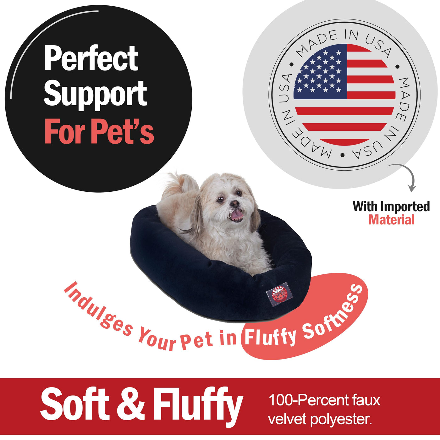 Majestic Pet 24 Inch Micro Velvet Calming Dog Bed Washable - Cozy Soft Round Dog Bed With Spine For Head Support - Fluffy Donut
