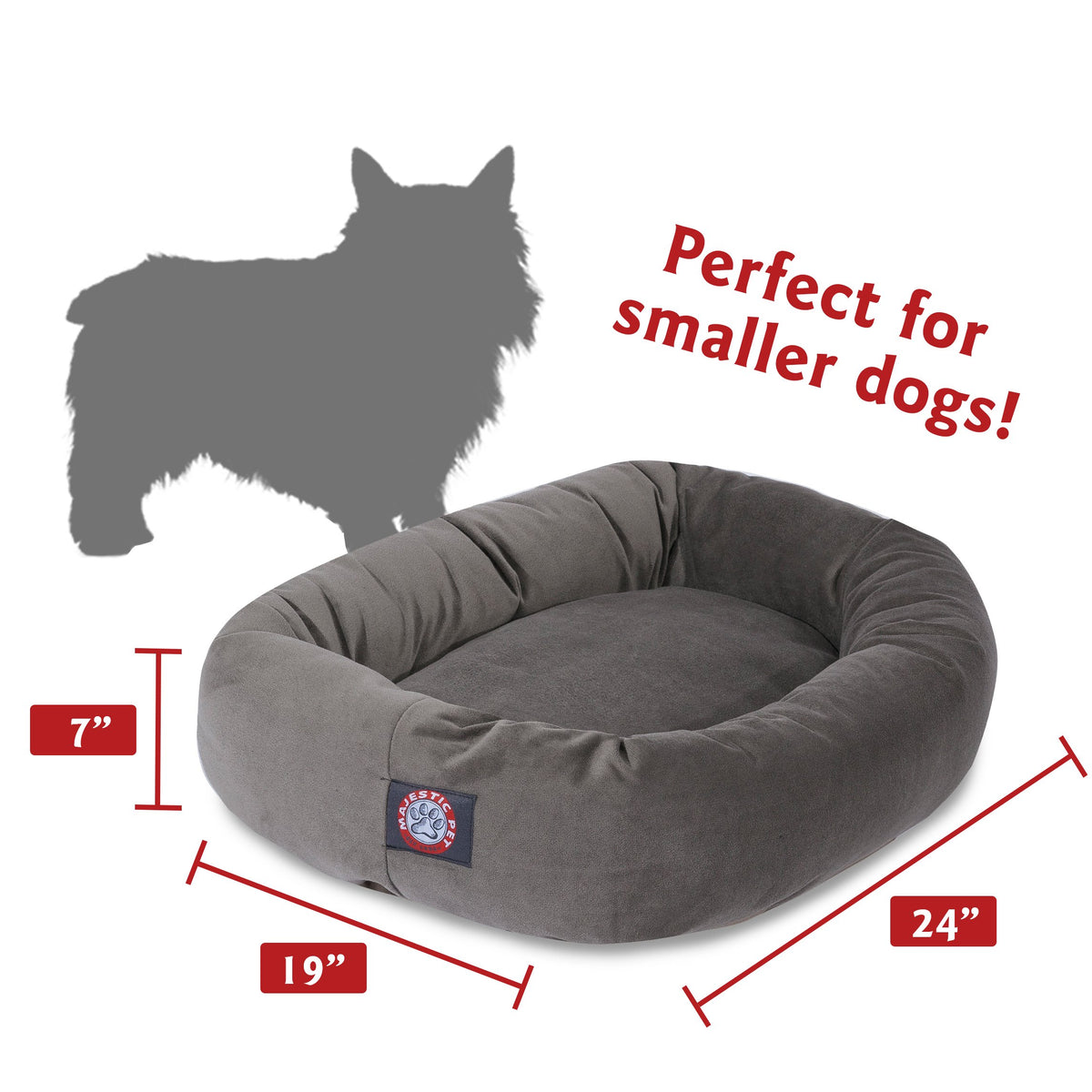 Majestic Pet 24 Inch Suede Calming Dog Bed - Washable, Soft, Round Pet Bed With Spine Support; Fluffy Donut Design; 24X19X7 Inches; Gray