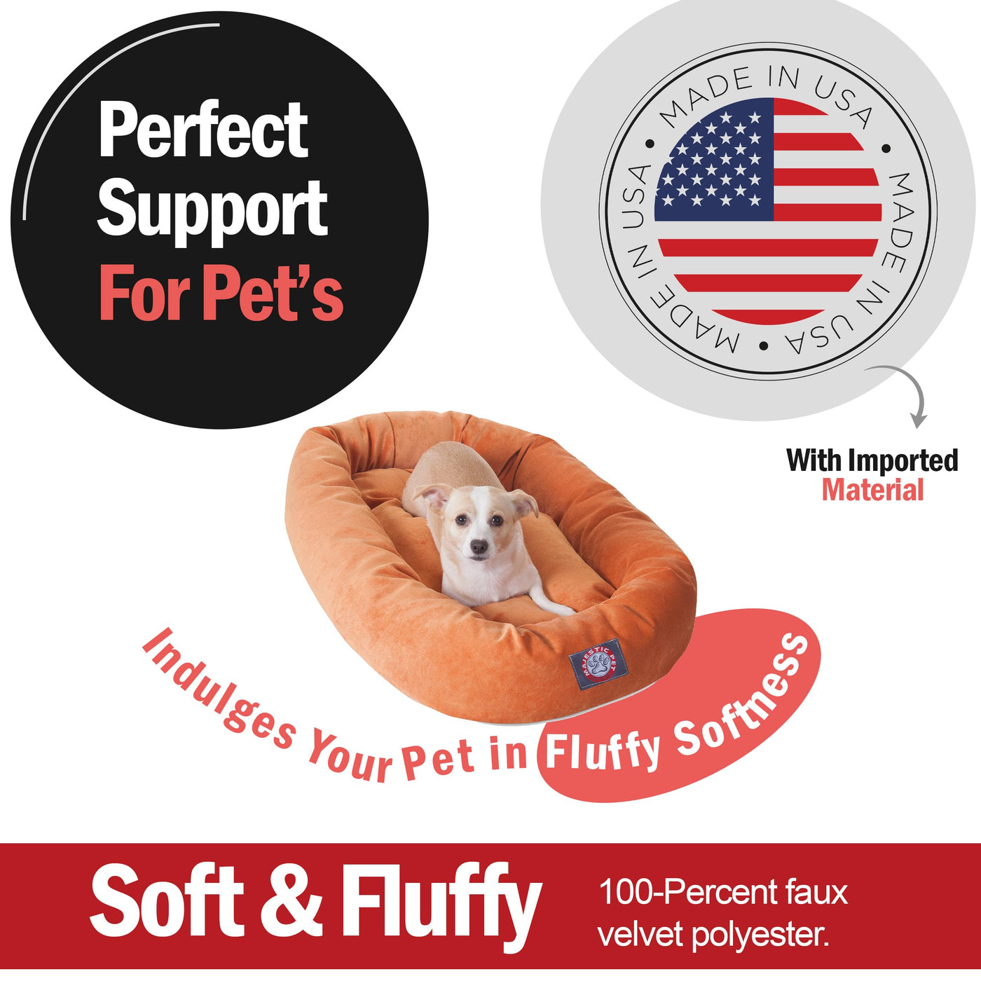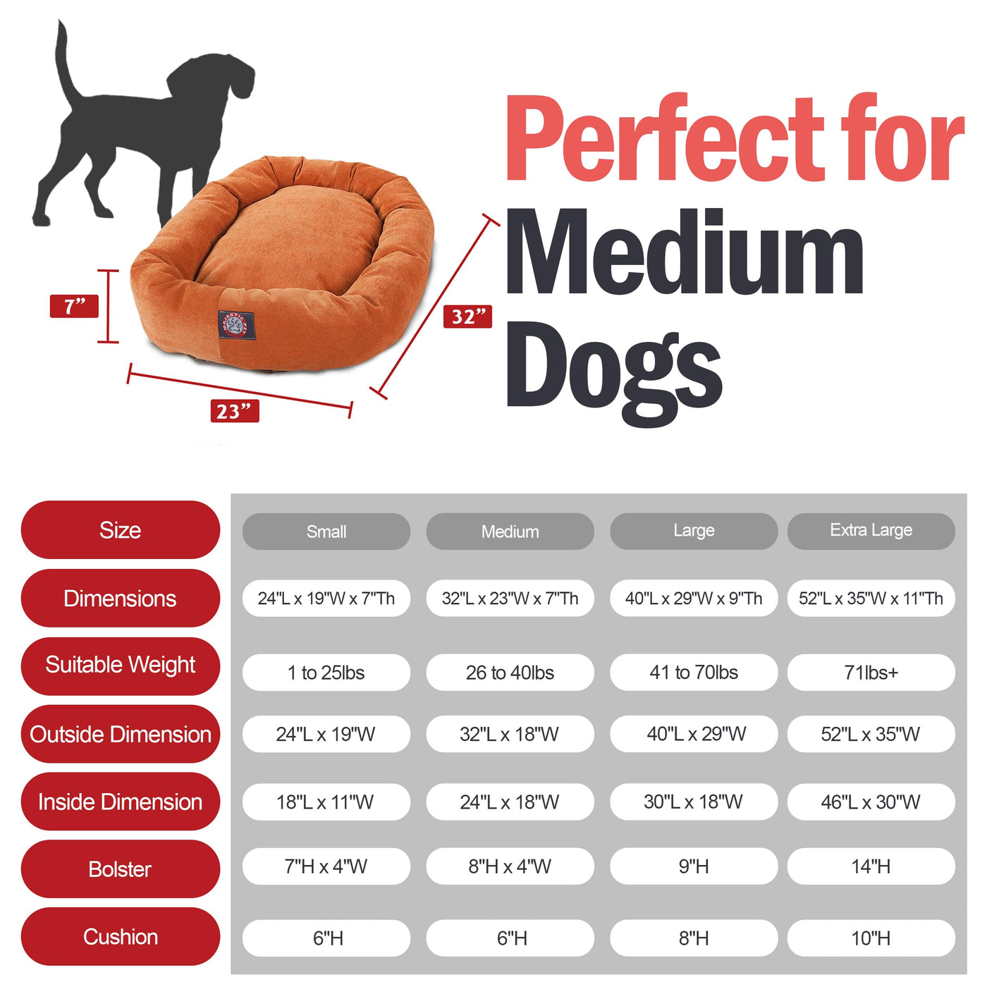 Q: What size dog is the 32 inch Orange Villa Collection Micro Velvet Bagel Dog Bed suitable for?A: The 32 inch Orange Villa Collection Micro Velvet Bagel Dog Bed is perfect for medium-sized dogs weighing between 25 to 40 lbs.