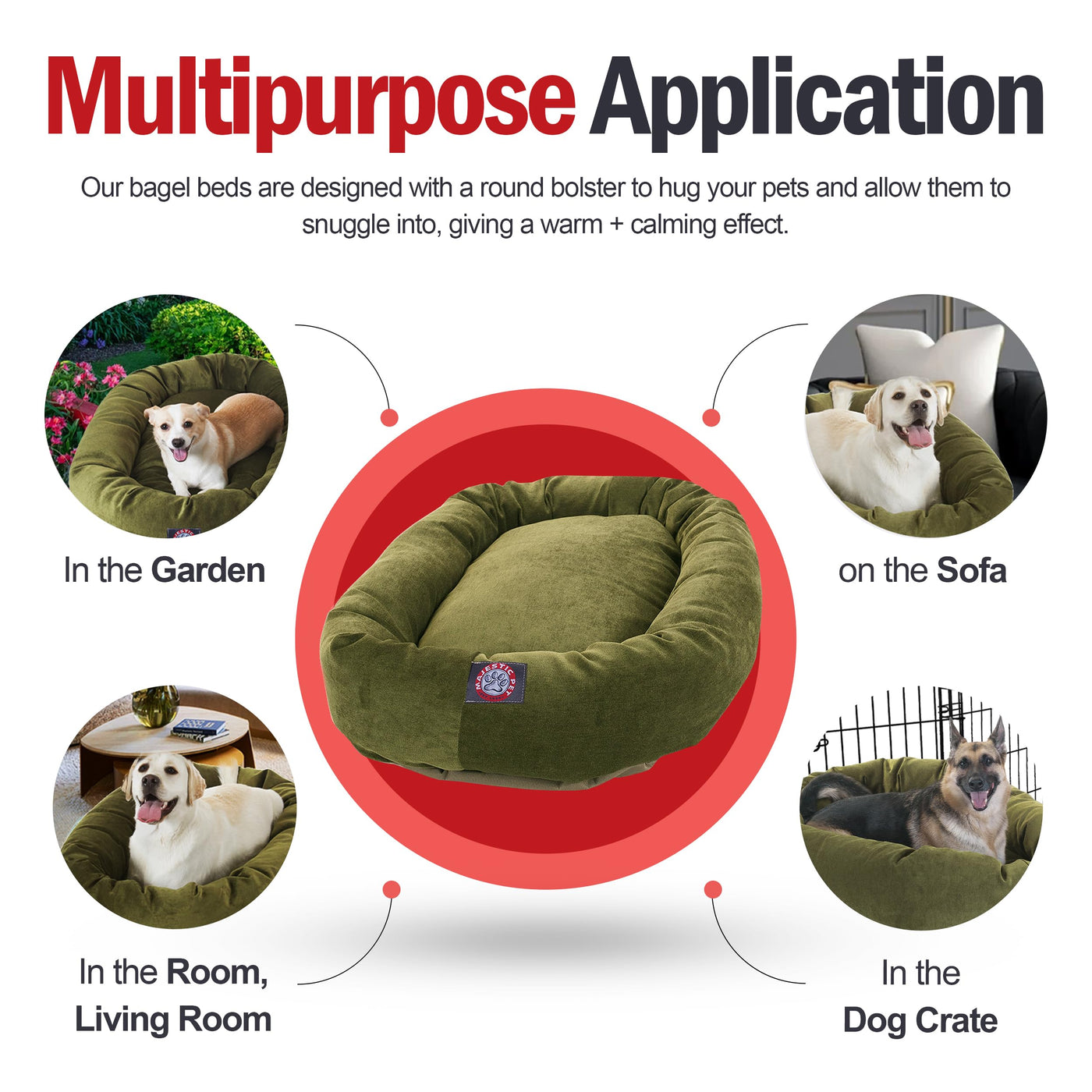 Majestic Pet 32 Inch Micro Velvet Calming Dog Bed Washable – Cozy Soft Round Dog Bed With Spine For Head Support - Fluffy Donut Dog Bed 32X23X7 (Inch) – Round Pet Bed Medium – Fern