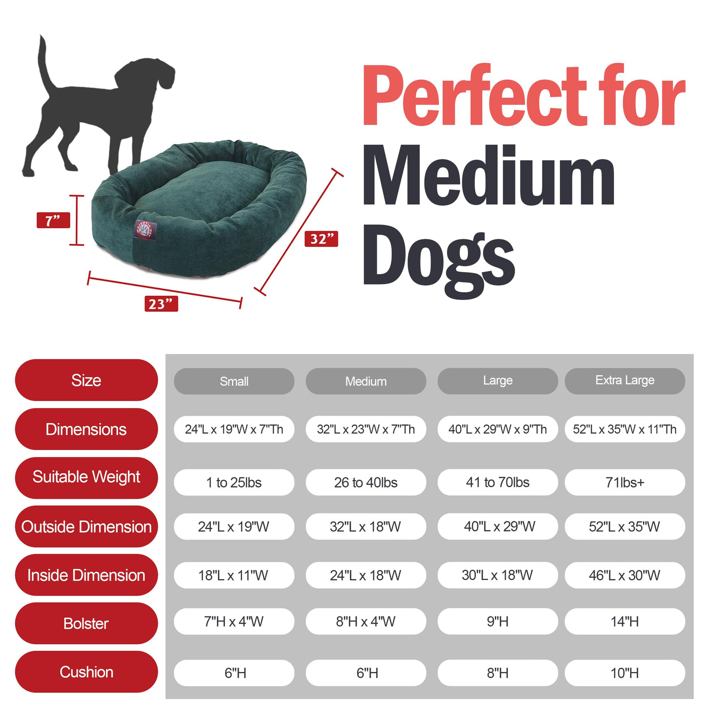 Majestic Pet 32 Inch Micro Velvet Calming Dog Bed Washable – Cozy Soft Round Dog Bed With Spine For Head Support - Fluffy Donut Dog Bed 32X23X7 (Inch) – Round Pet Bed Medium – Marine