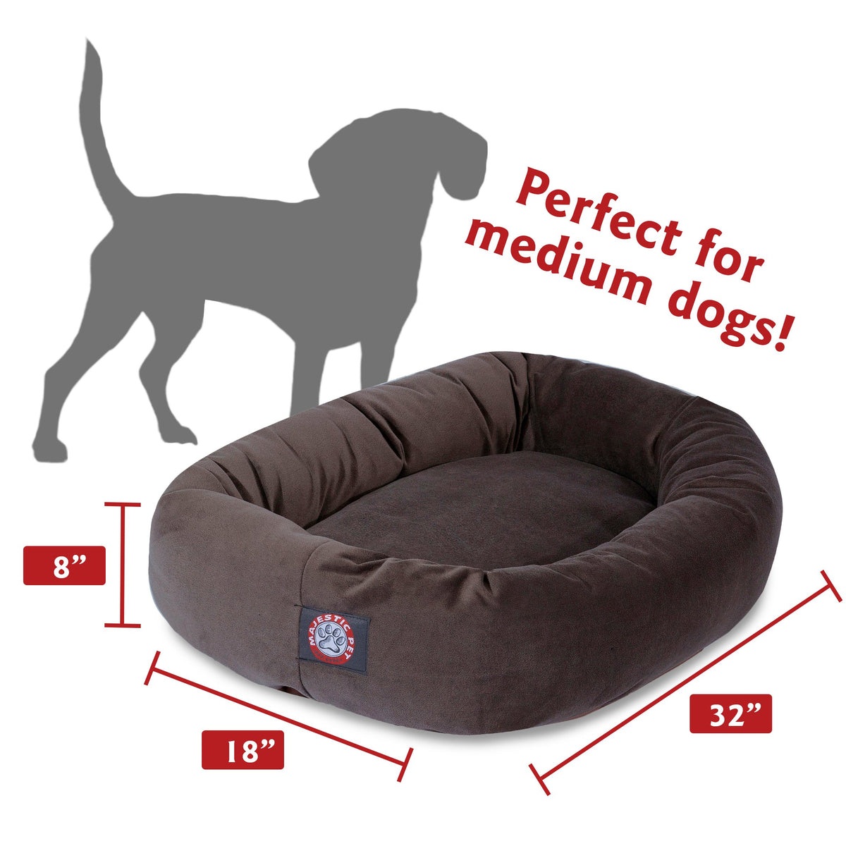 Majestic Pet 32 Inch Suede Calming Dog Bed Washable – Cozy Soft Round Dog Bed With Spine Support For Dogs To Rest Their Head - Fluffy Donut Dog Bed 32X23X7 (Inch) - Round Pet Bed Medium – Chocolate