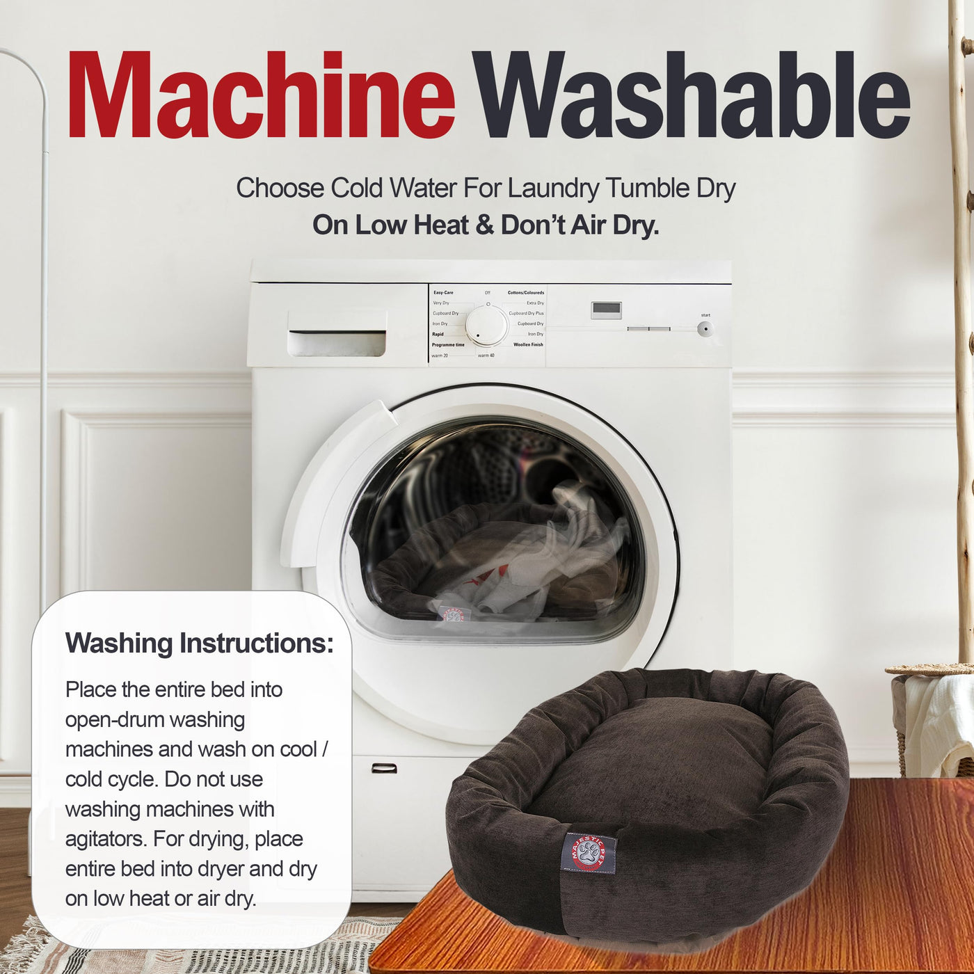 Q: Is the Majestic Pet dog bed machine washable?A: Yes, the dog bed is machine washable, allowing for easy cleaning and maintenance. Simply follow the care instructions to keep it fresh and hygienic for your pet.