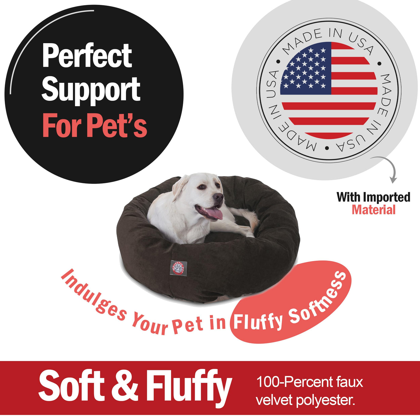 Majestic Pet 40 Inch Micro Velvet Calming Dog Bed Washable – Cozy Soft Round Dog Bed With Spine For Head Support - Fluffy Donut Dog Bed 40X29X9 (Inch) – Round Pet Bed Large – Storm