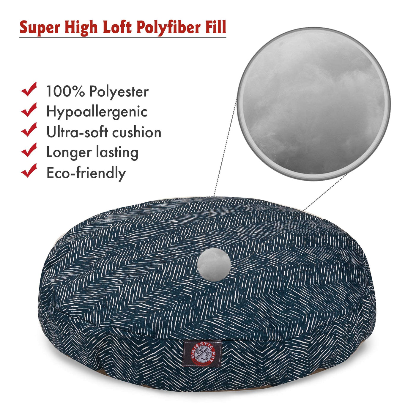 Q: How does the dog bed provide comfort for pets?A: The Majestic Pet dog bed is filled with super plush fiberfill, providing ample comfort and support for your pet, whether they are lounging indoors or enjoying the outdoors.